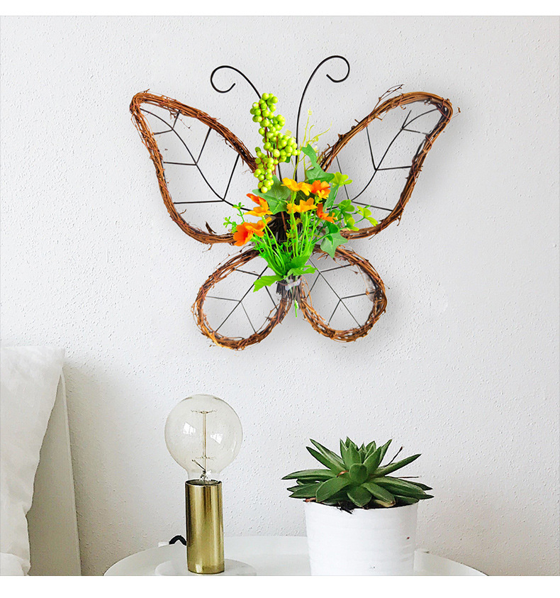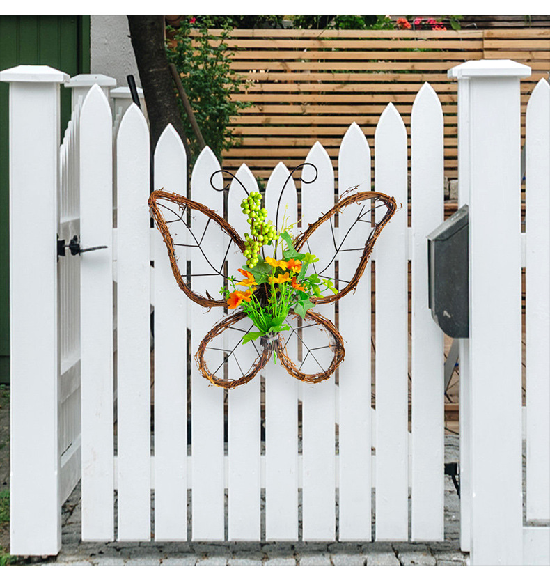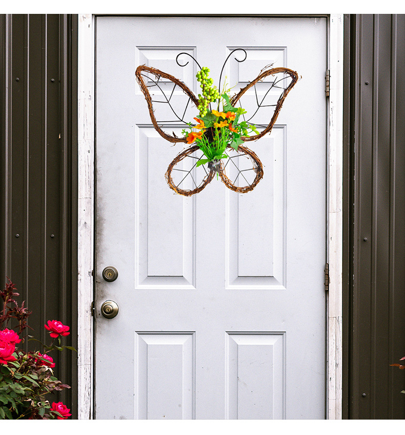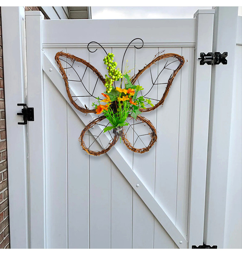 跨境枯枝蝴蝶花环门挂 春季仿真花铁艺藤圈门窗挂件家居派对装饰