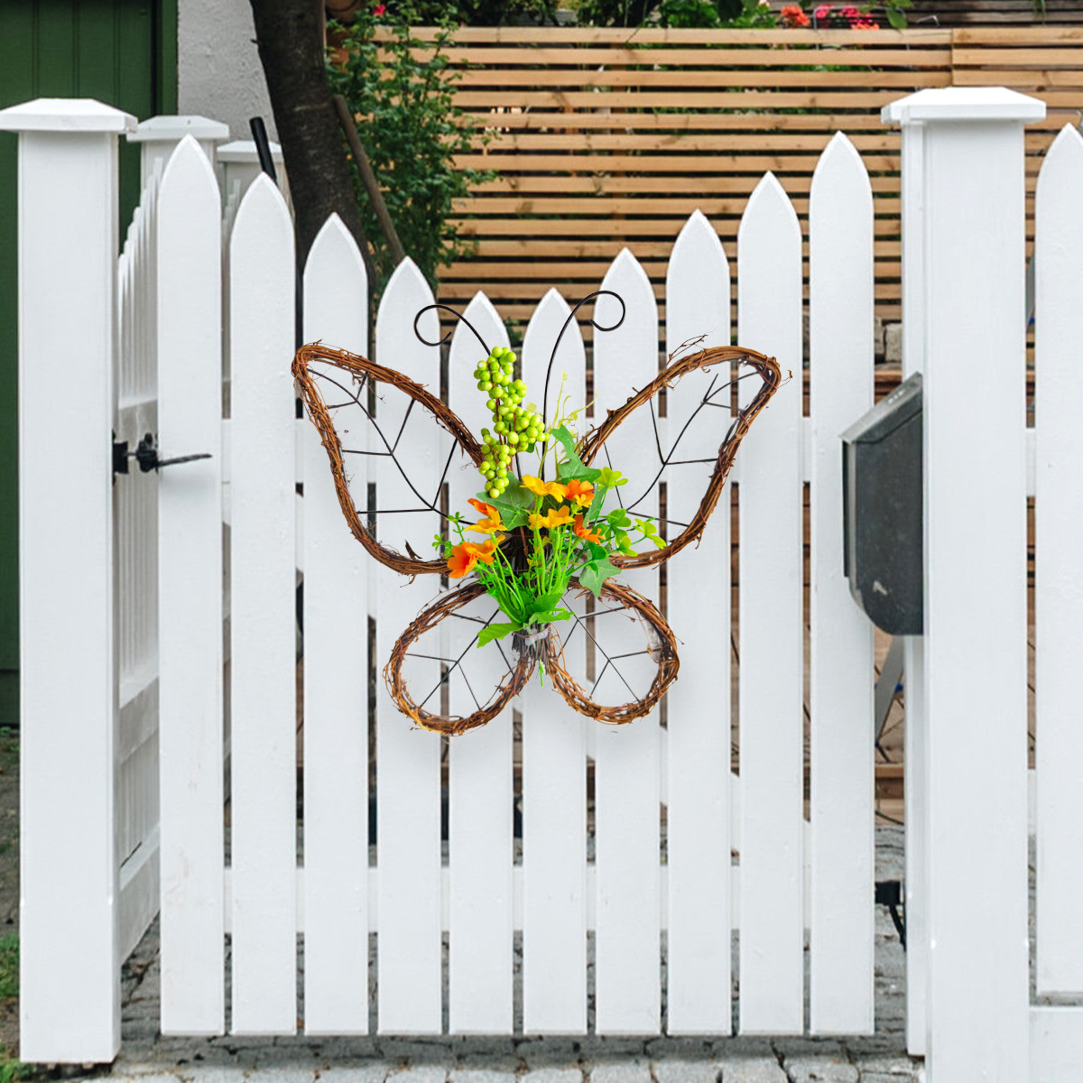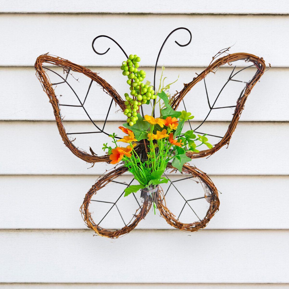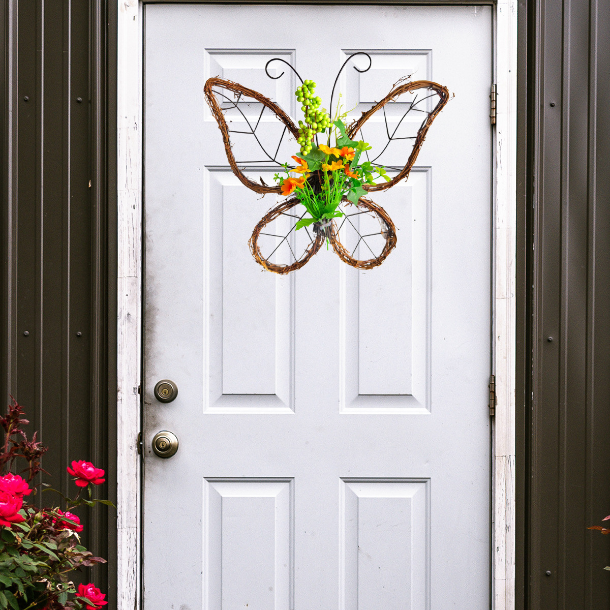 跨境枯枝蝴蝶花环门挂 春季仿真花铁艺藤圈门窗挂件家居派对装饰