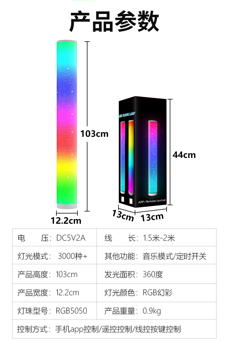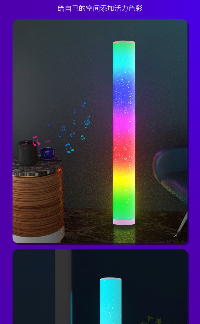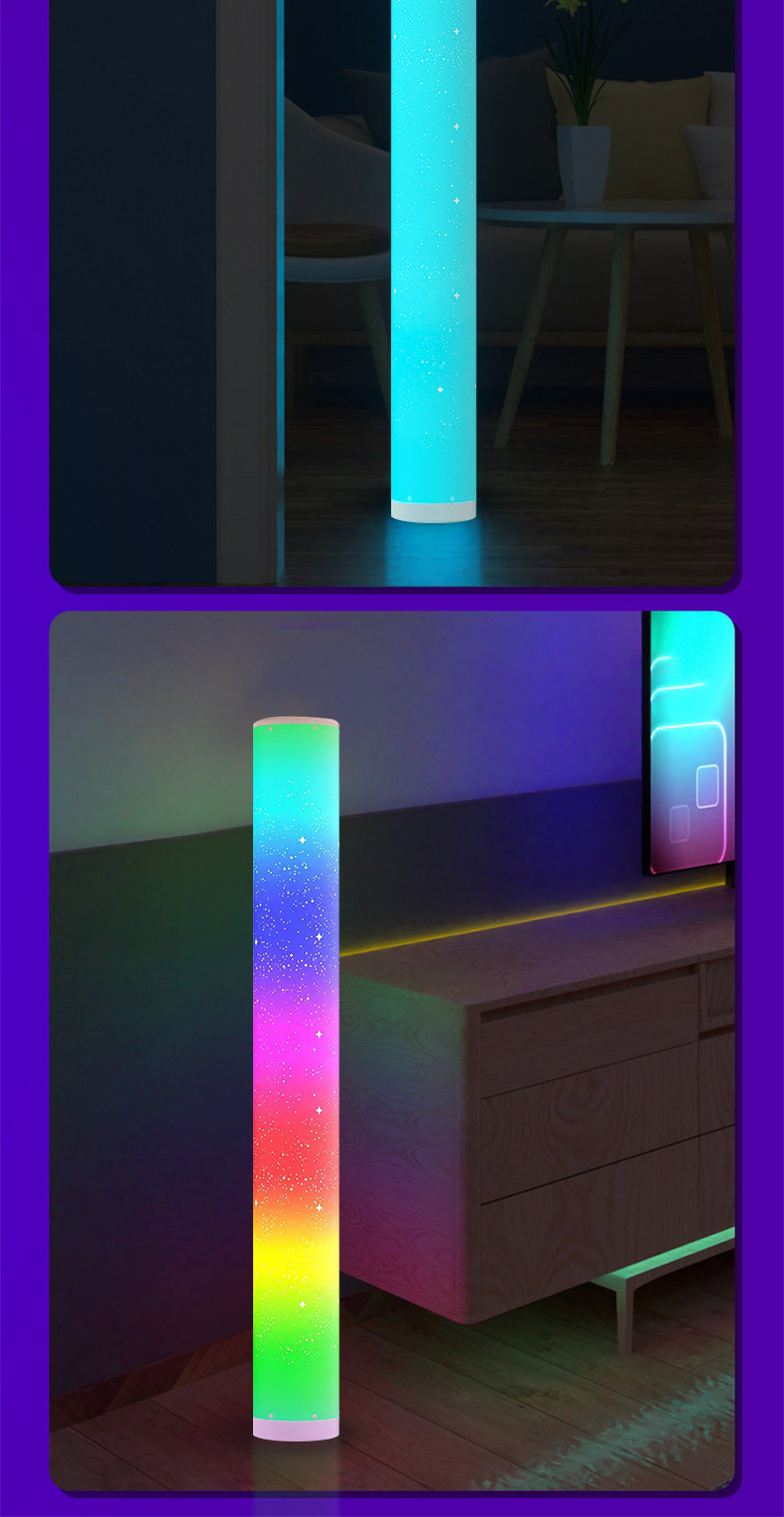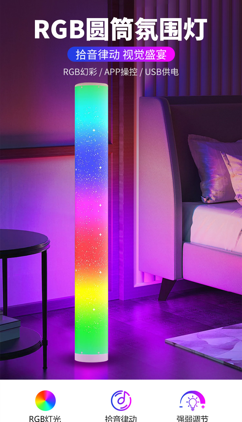 新款带星孔RGB全彩遥控APP圆筒落地灯卧室客厅氛围装饰拾音小夜灯