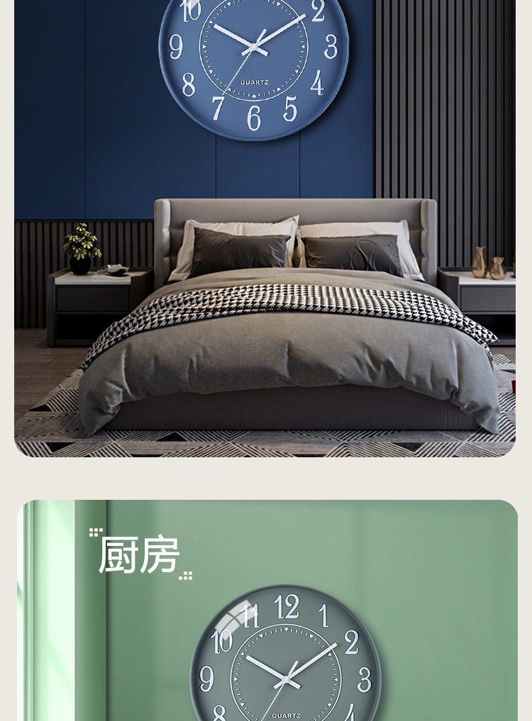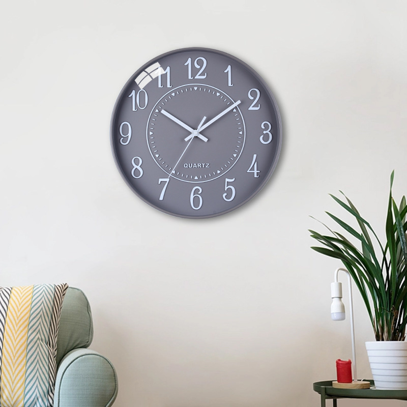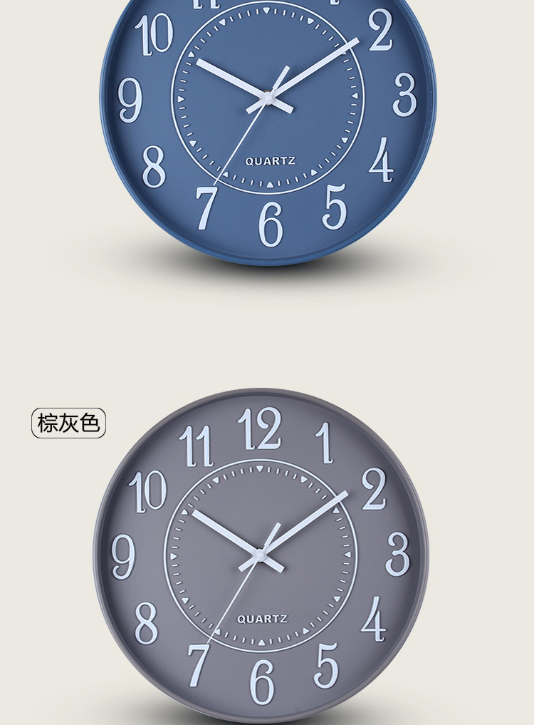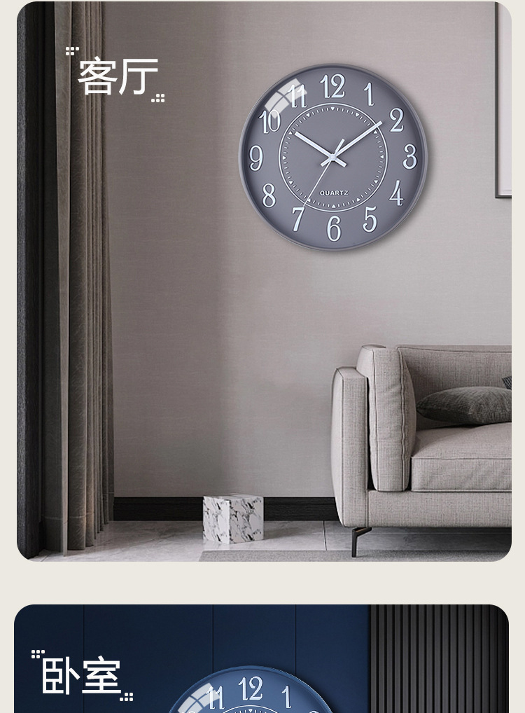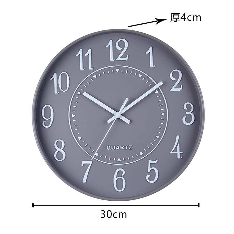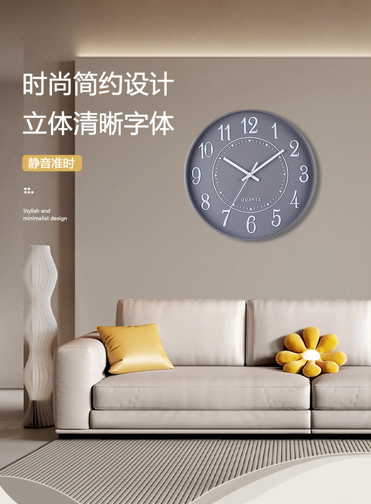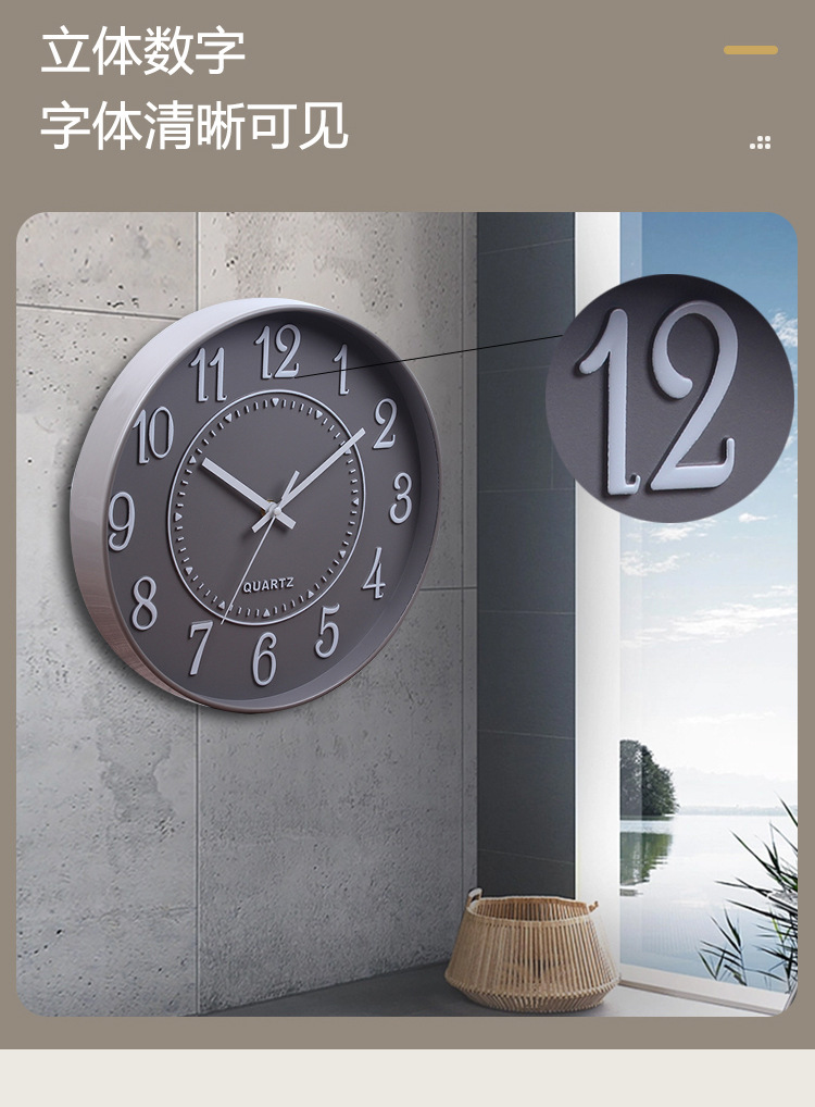 立体简约北欧时钟3D字体12寸电子静音挂钟准时扫描字体清晰石英钟 English | 投诉