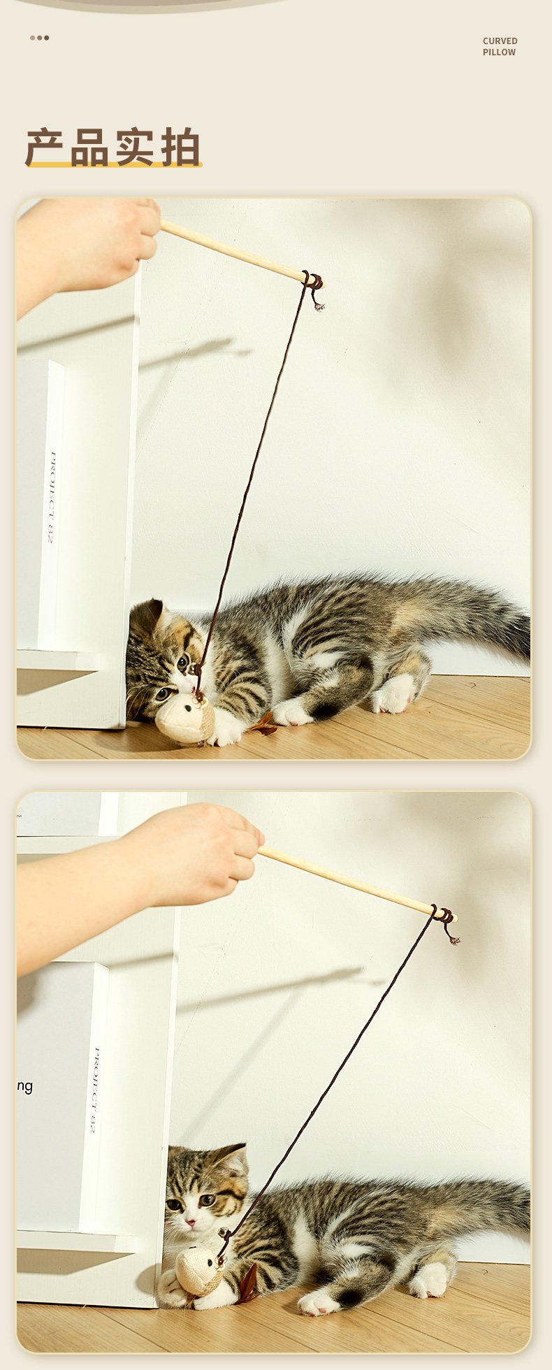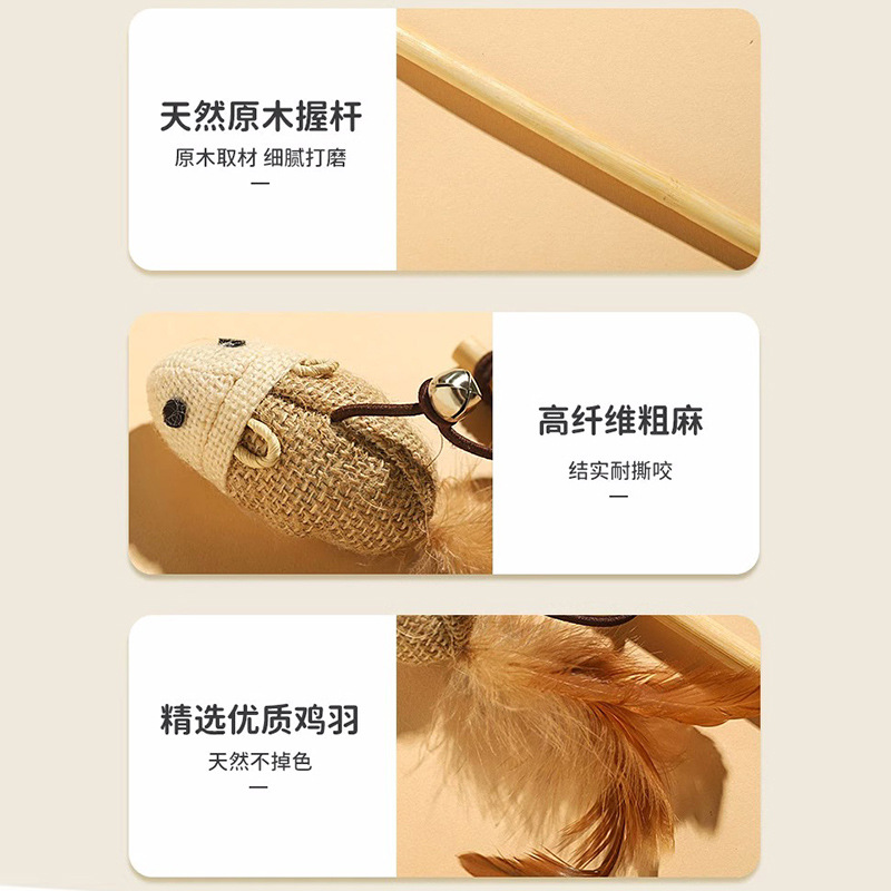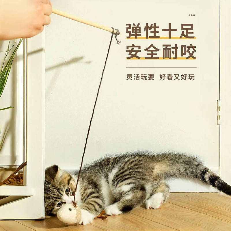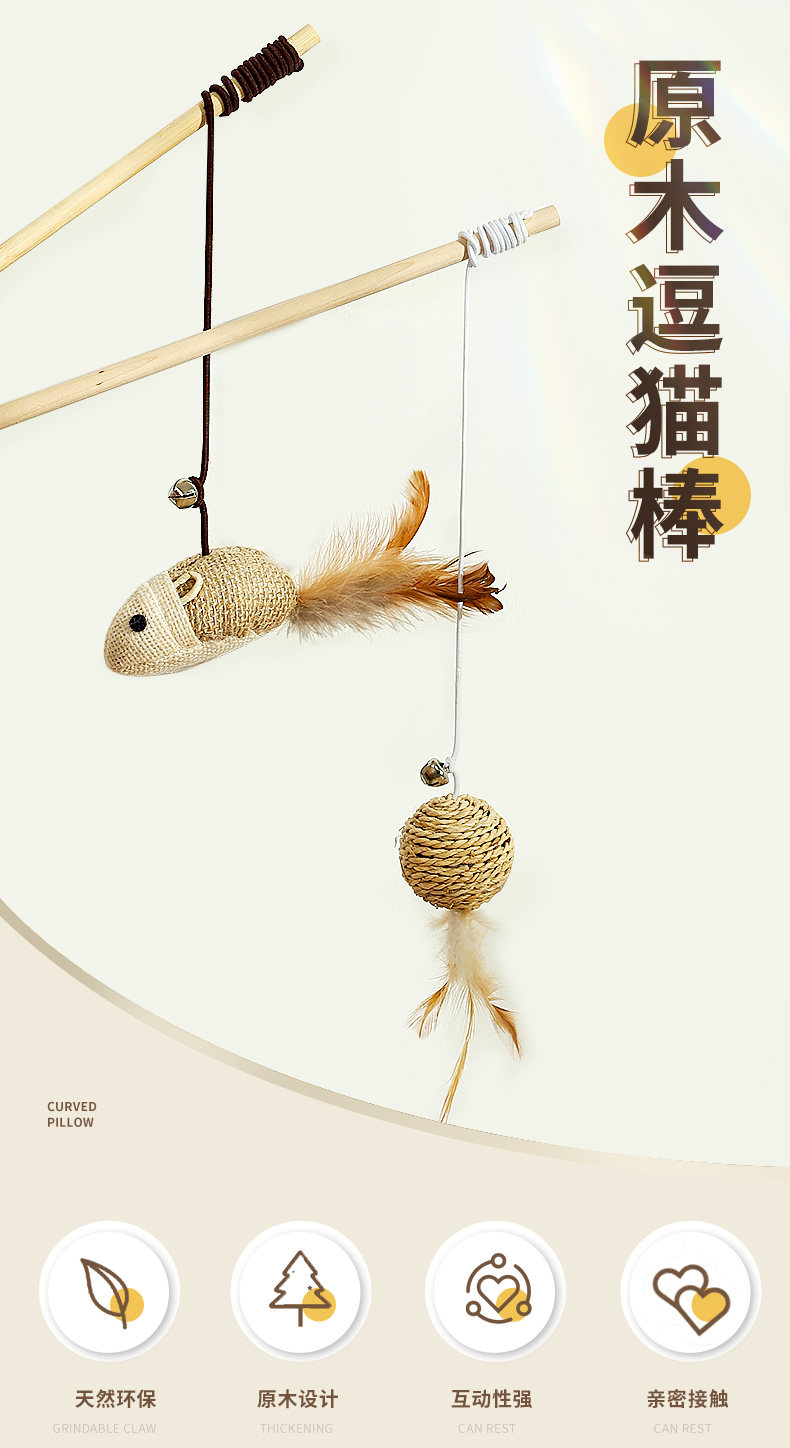 【品名】:木质原生态逗猫棒带(小老鼠/小圆球)