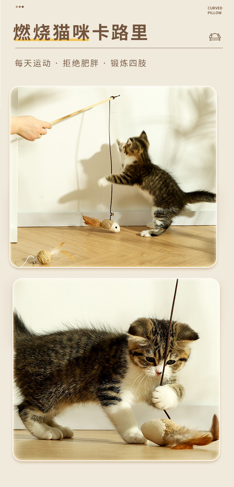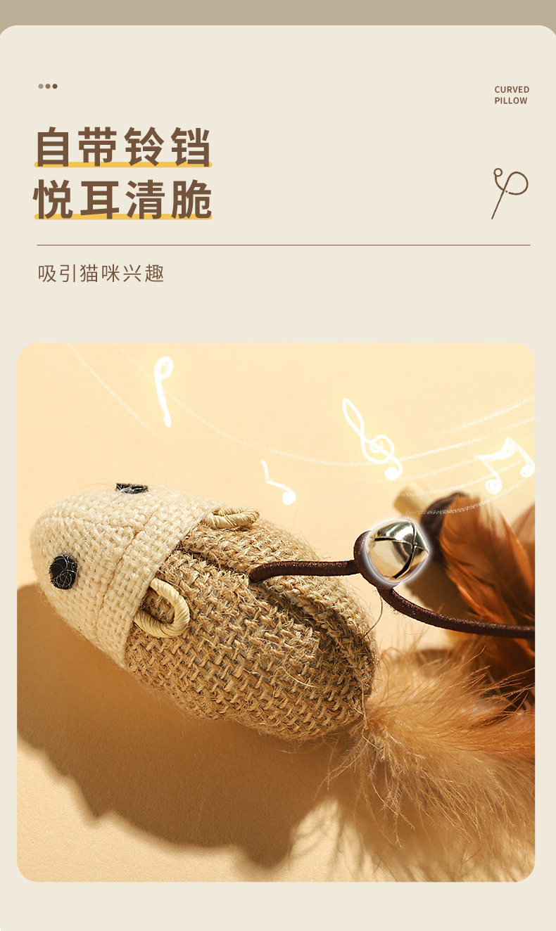 【材质】:小老鼠:杆为木质,老鼠为麻布、毛线、羽毛;小圆球:杆为木质,球为玉米皮加羽毛;