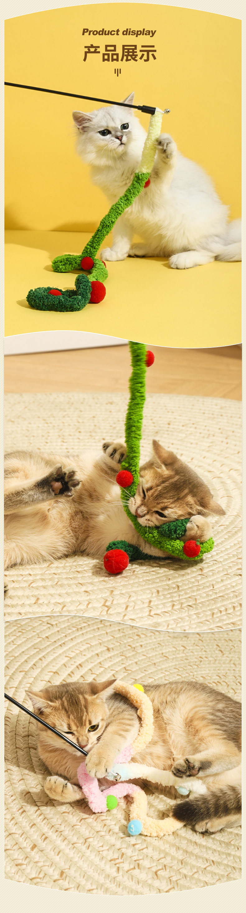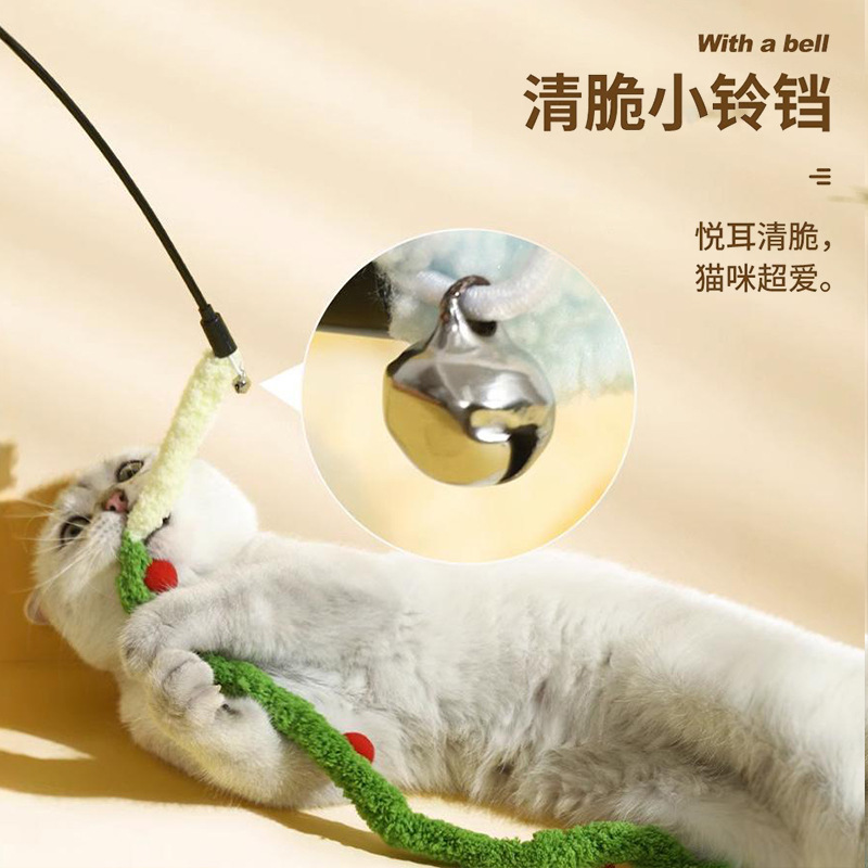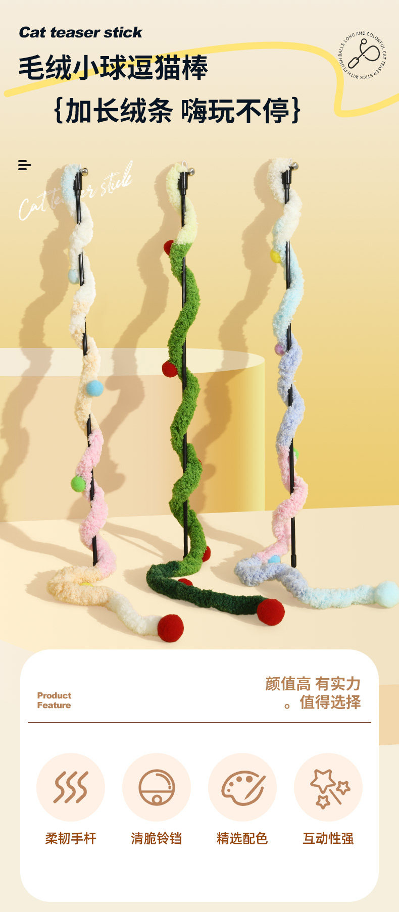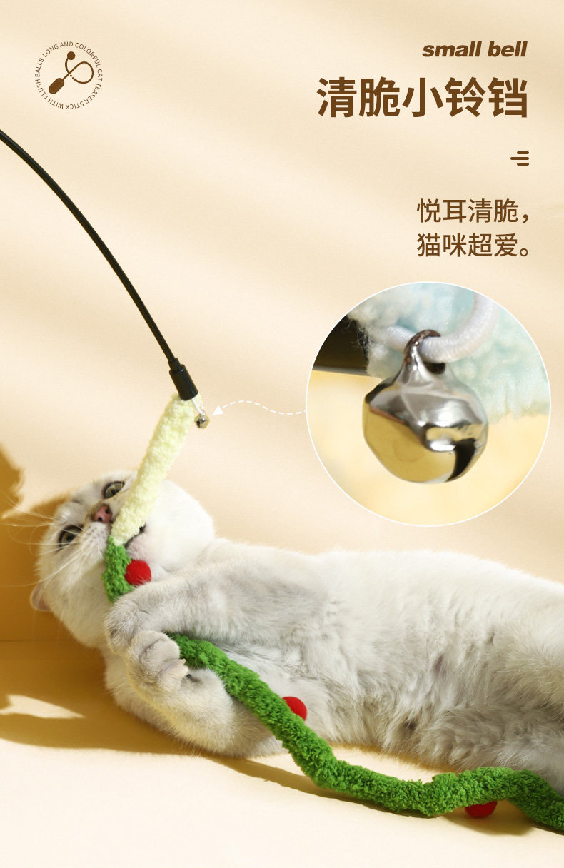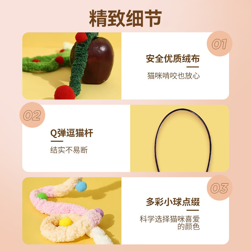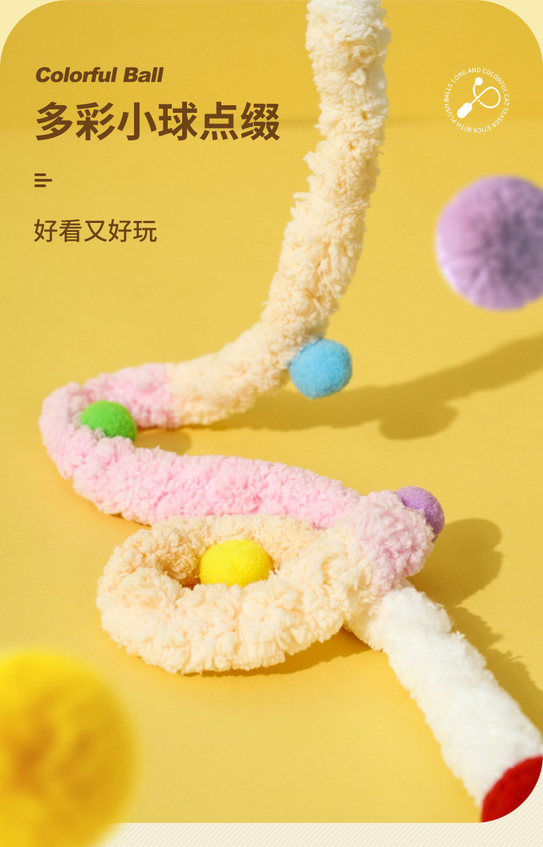 【名称】:HOOPET宠物毛绒彩球渐变(粉/蓝/绿)逗猫棒