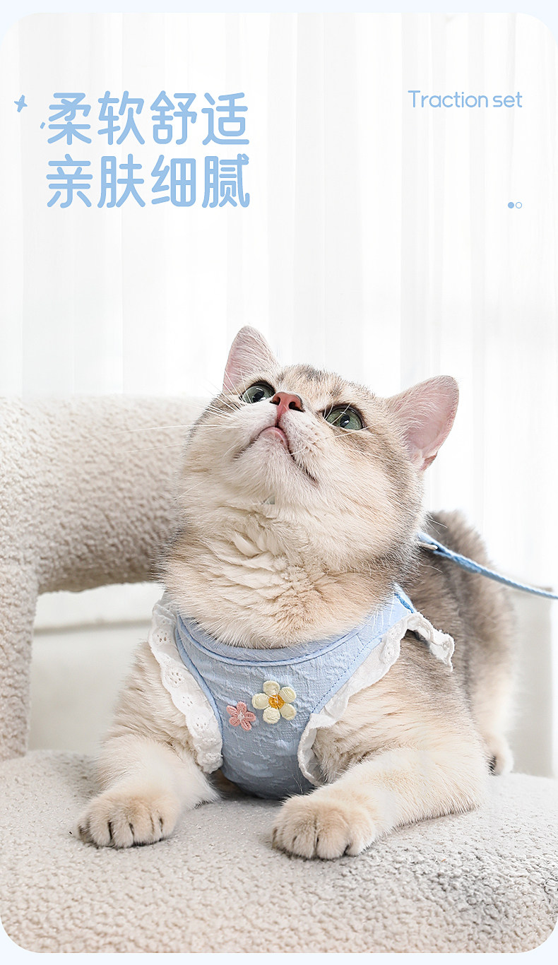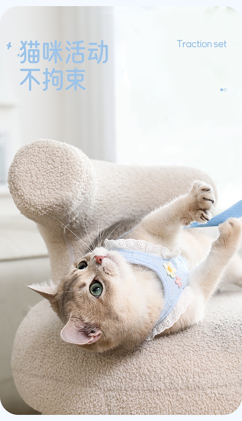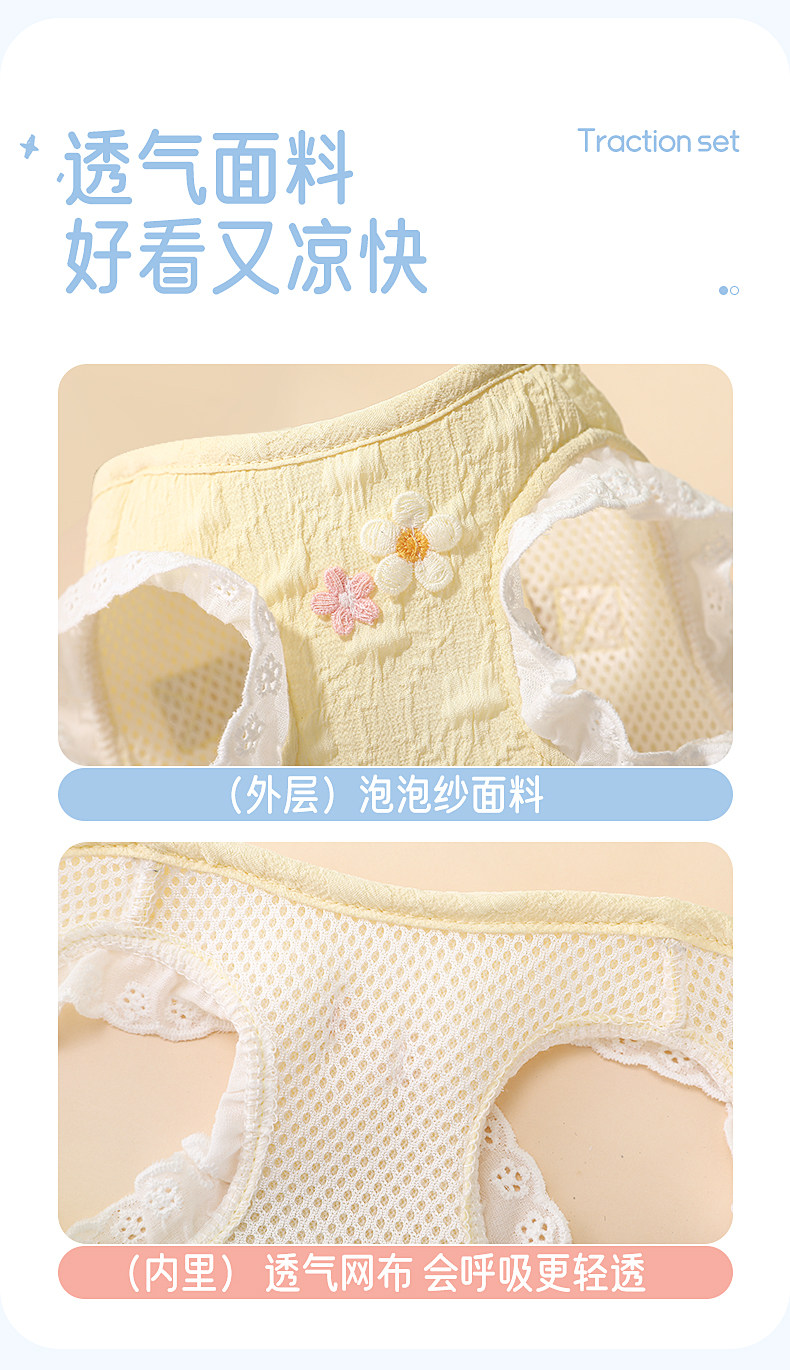 【品名】:HOOPET 花边袖牵引套装-黄色/蓝色(S/M/L)
