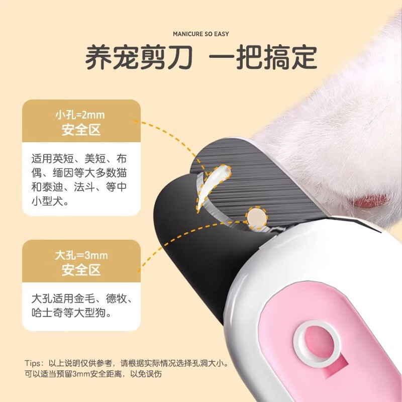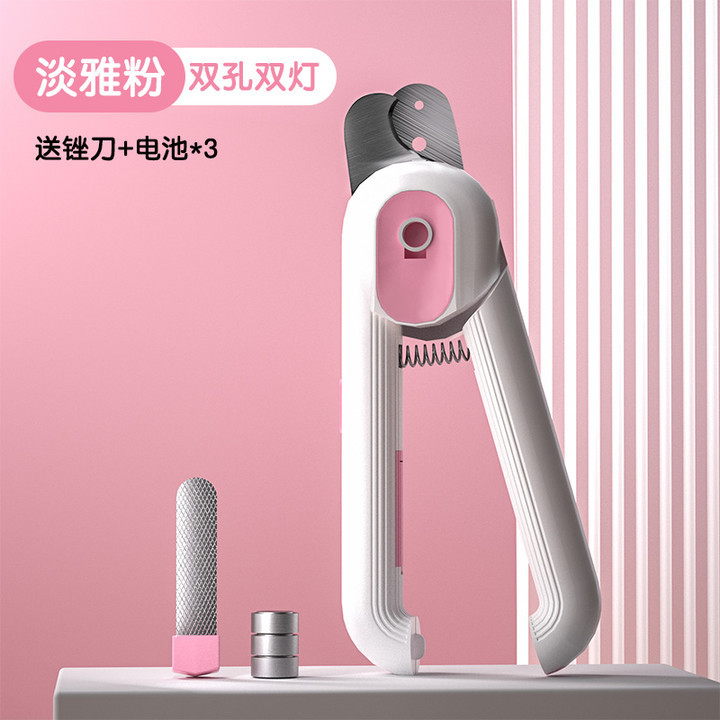 【品名】:HOOPET宠物带灯双孔指甲剪(粉/灰)
