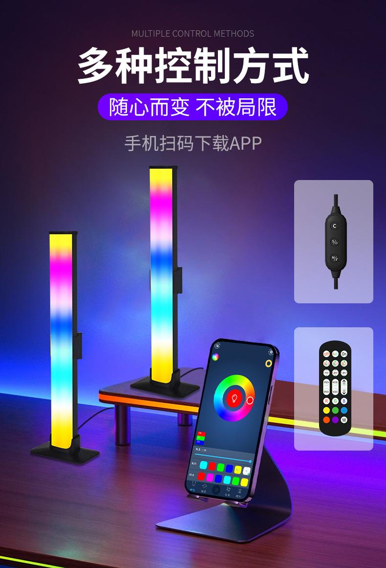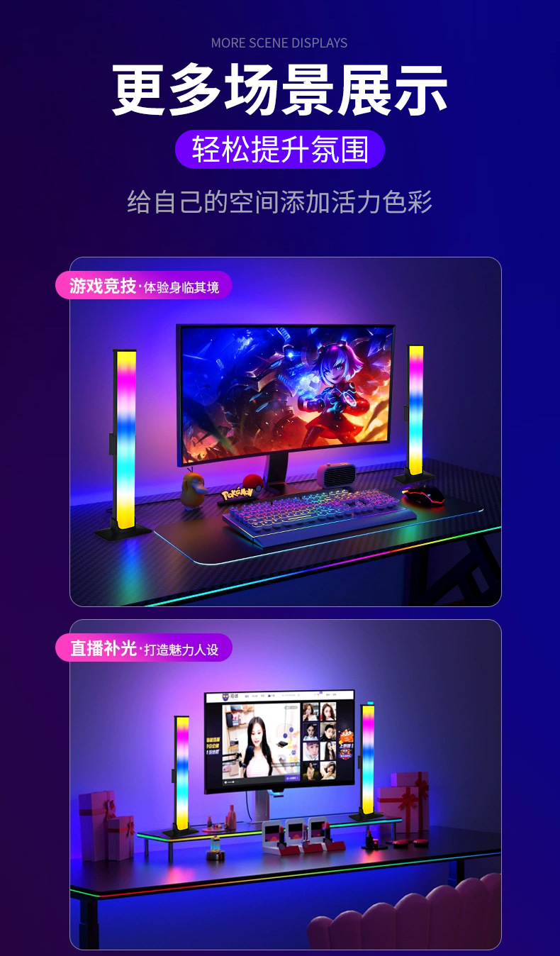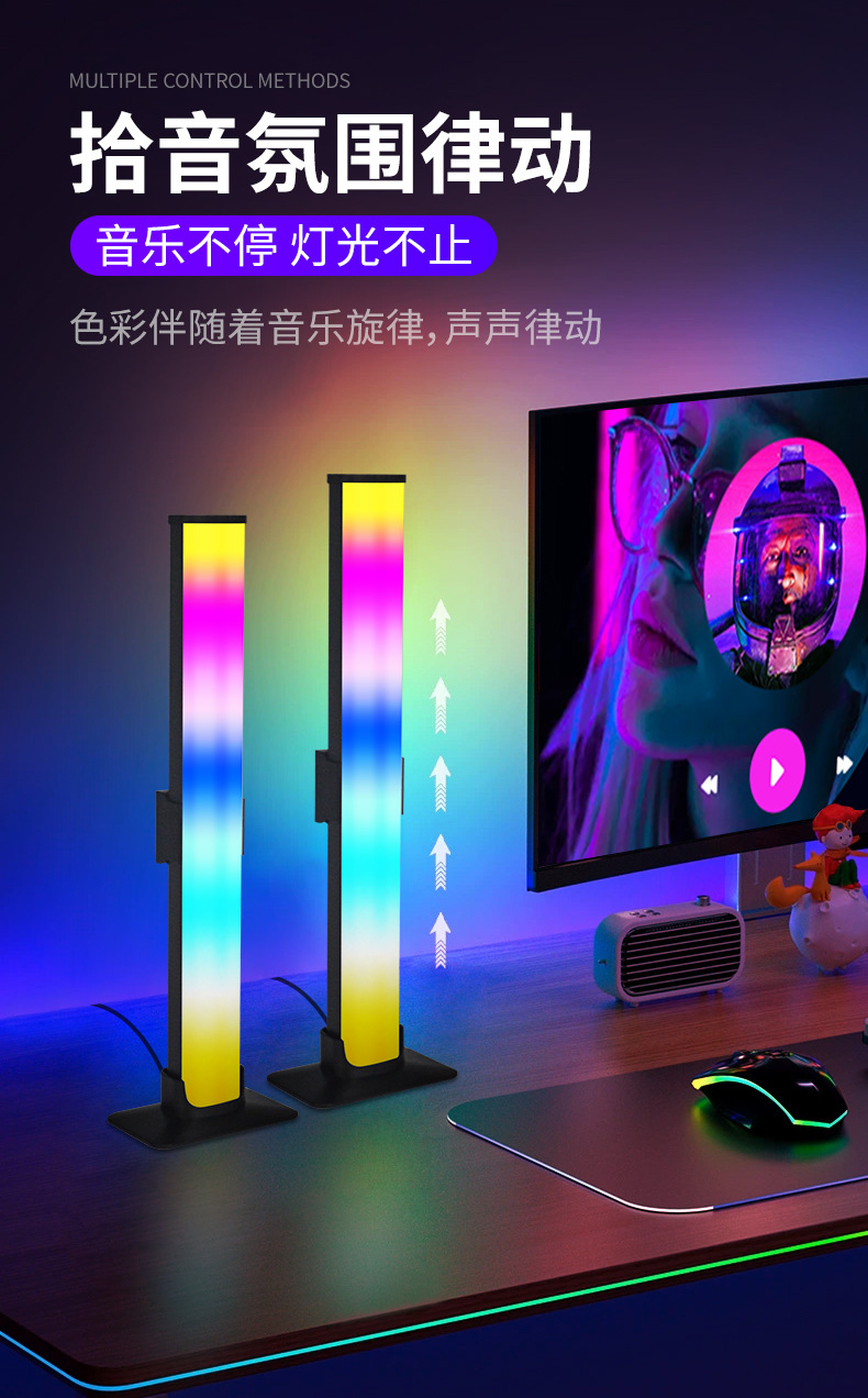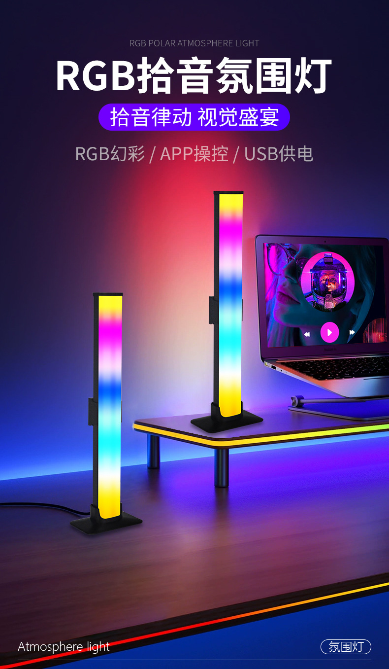 现货可拆幻彩网红直播智能电竞led气氛灯情侣开黑游戏桌面拾音灯