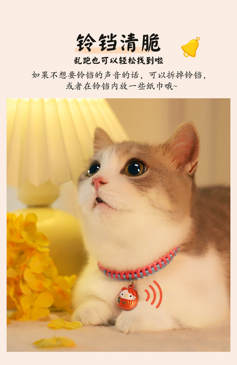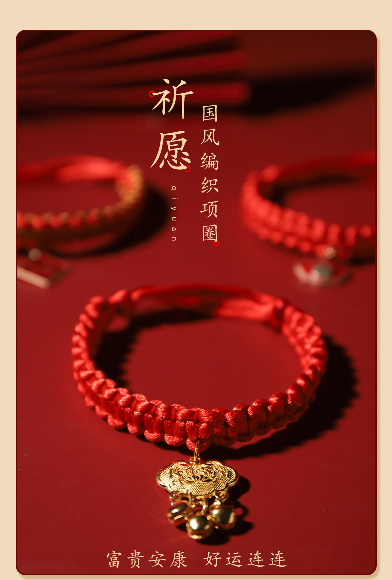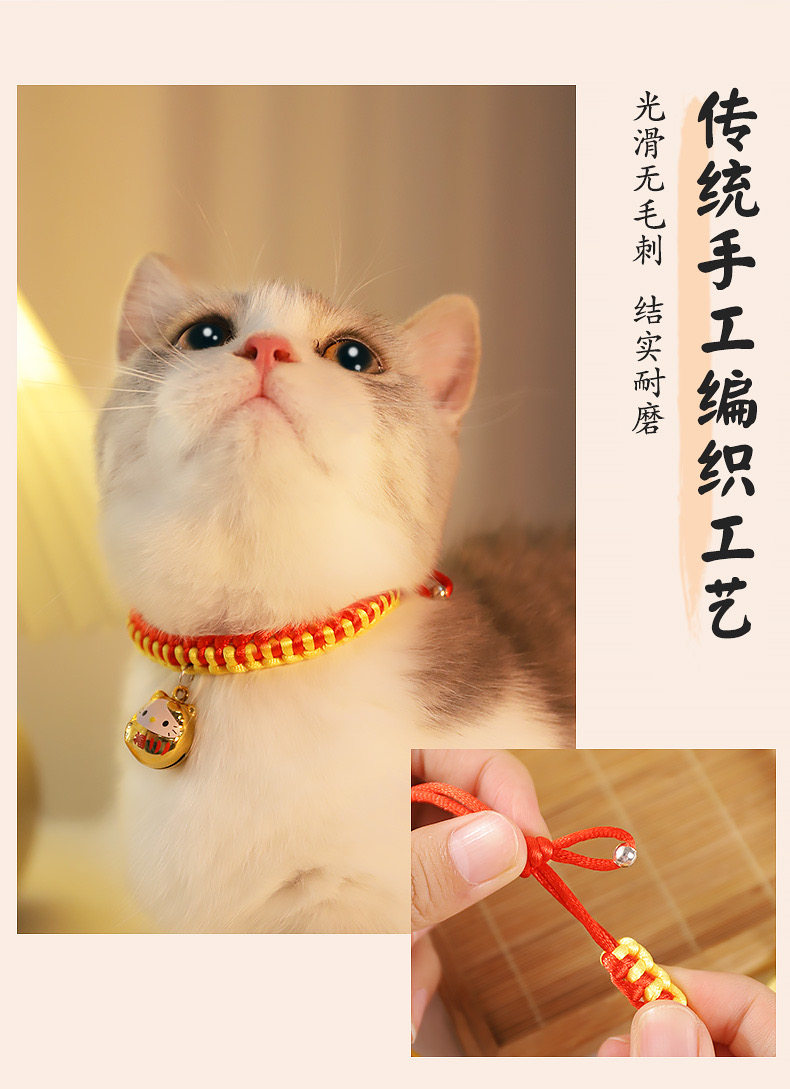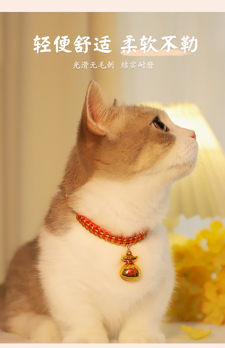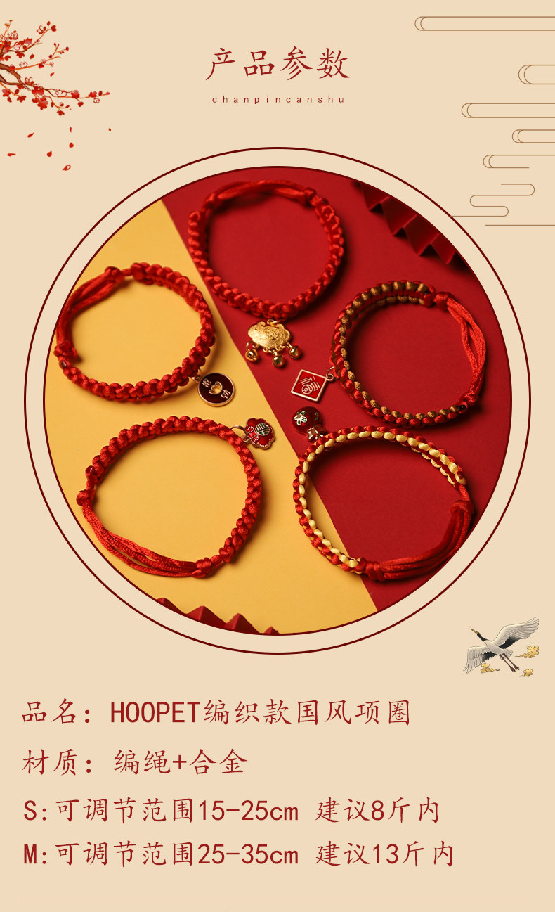 【品名】:HOOPET宠物卡通铃铛项圈(金色KT/金财袋/玫红KT)/编织款国风项圈-平安锁(S/M)