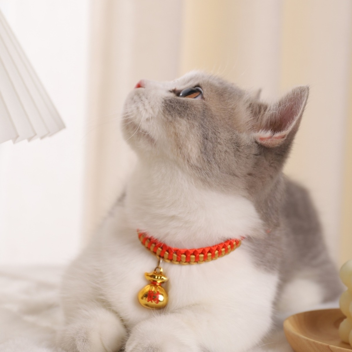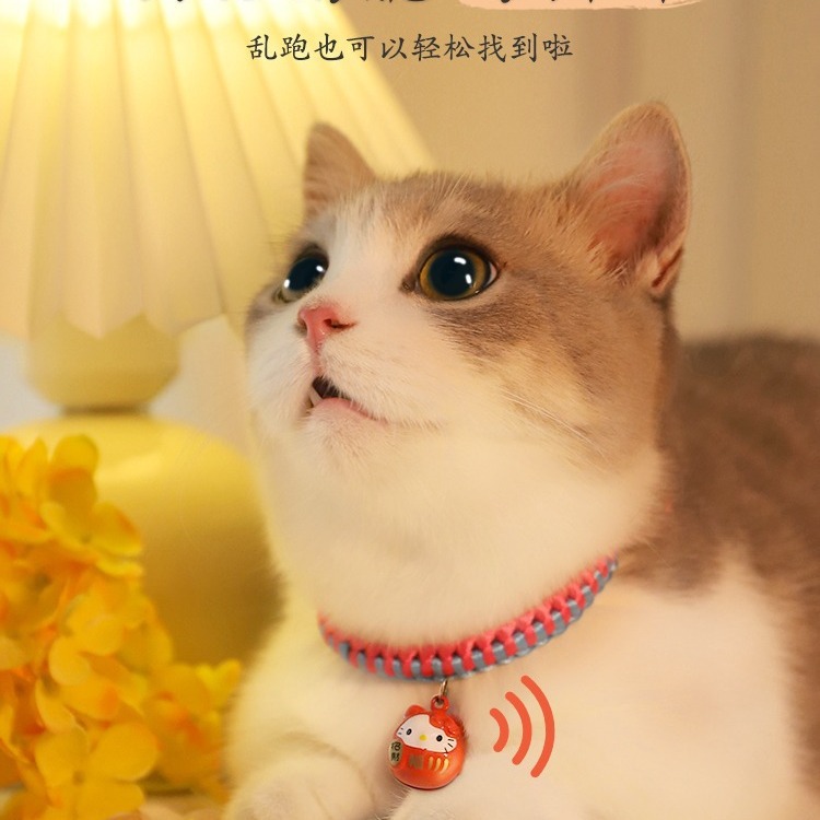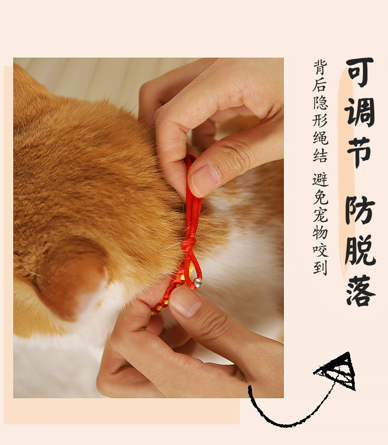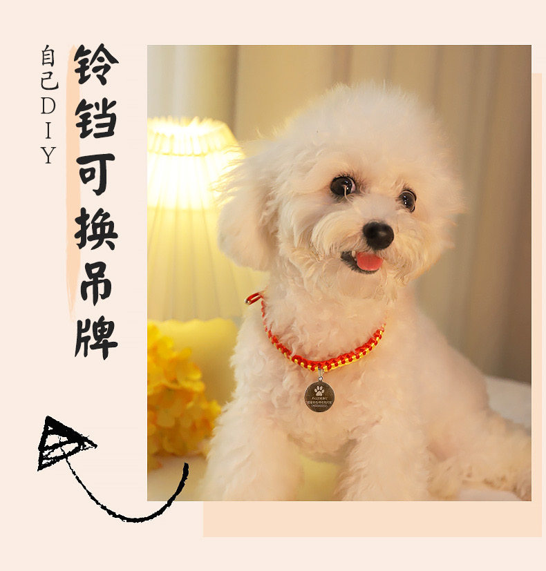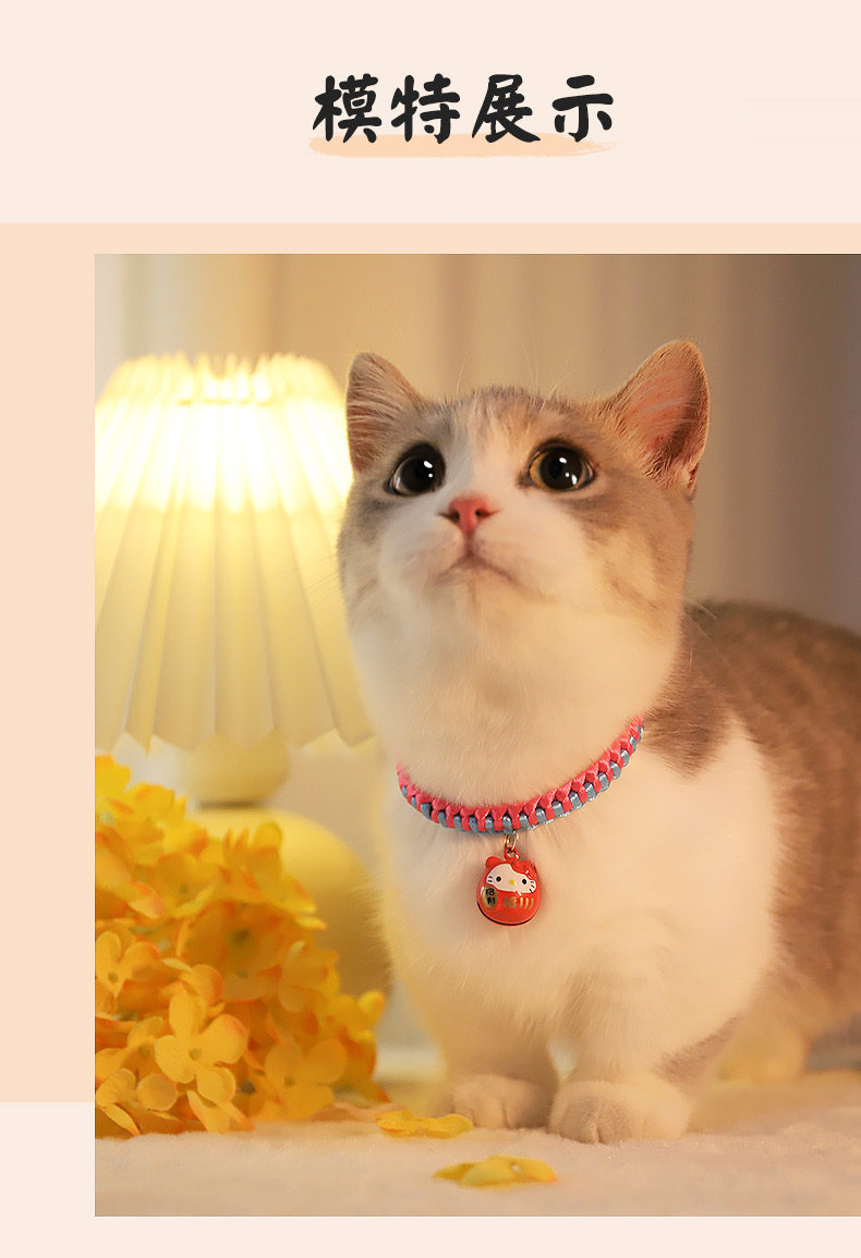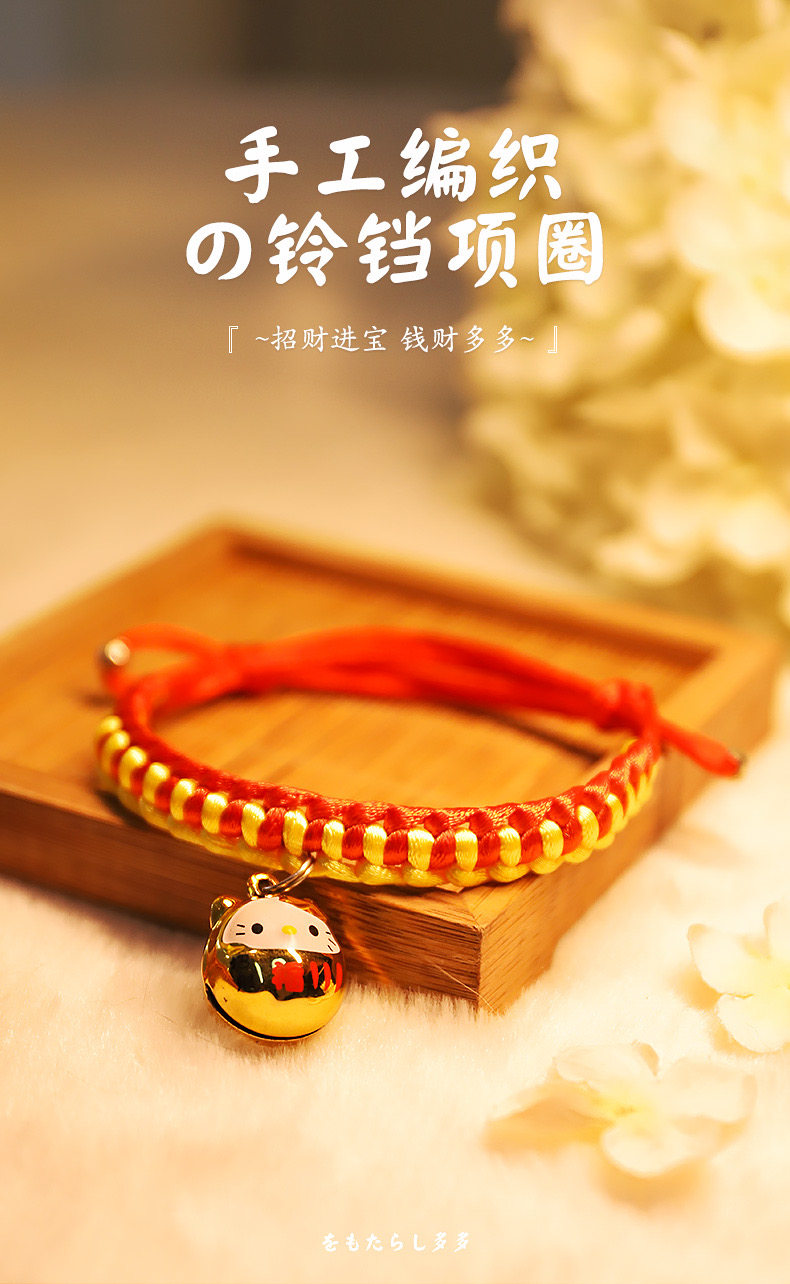 【品名】:HOOPET宠物卡通铃铛项圈(金色KT/金财袋/玫红KT)/编织款国风项圈-平安锁(S/M)