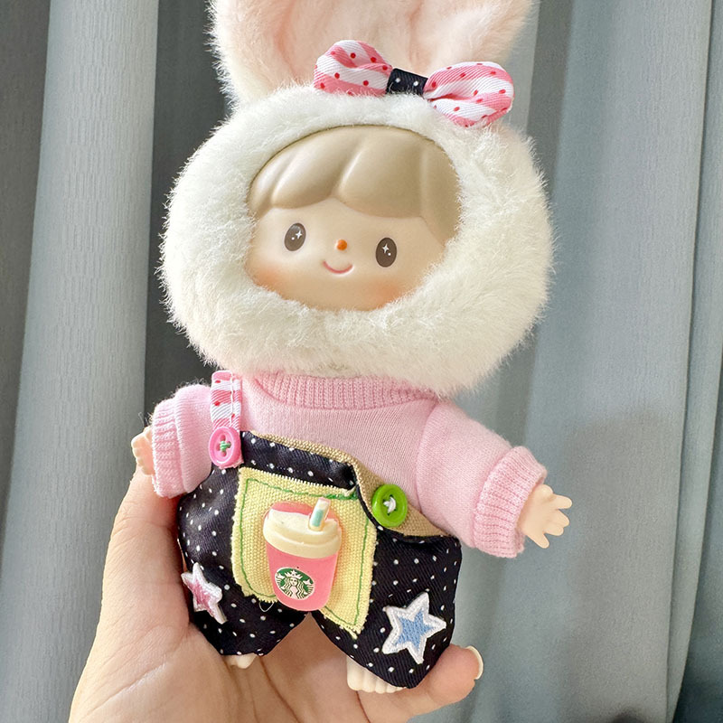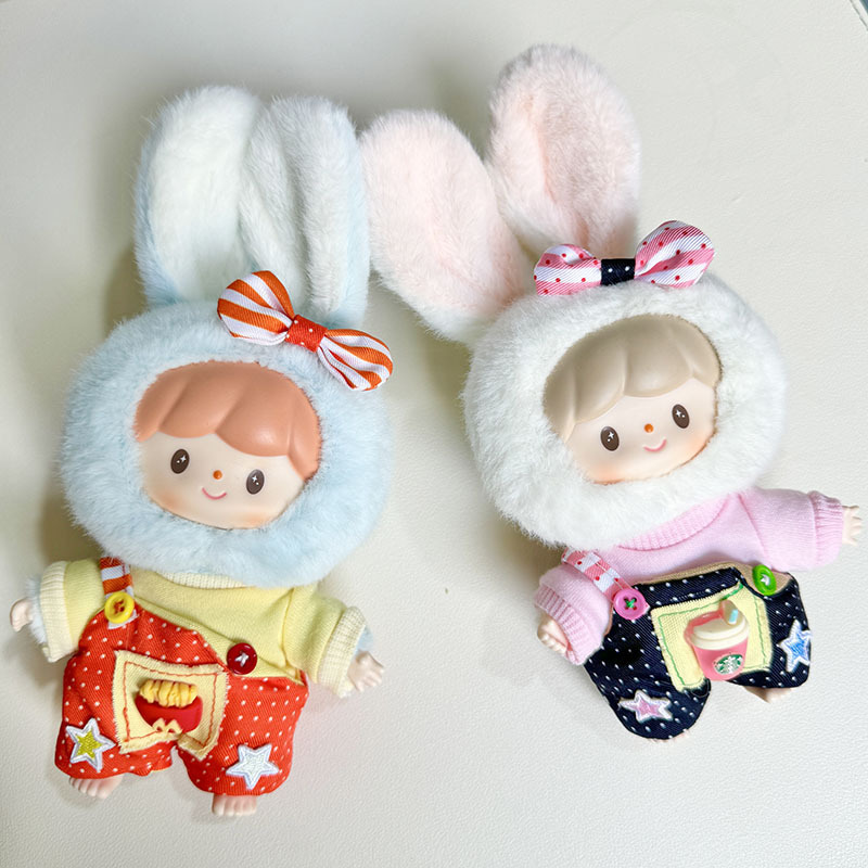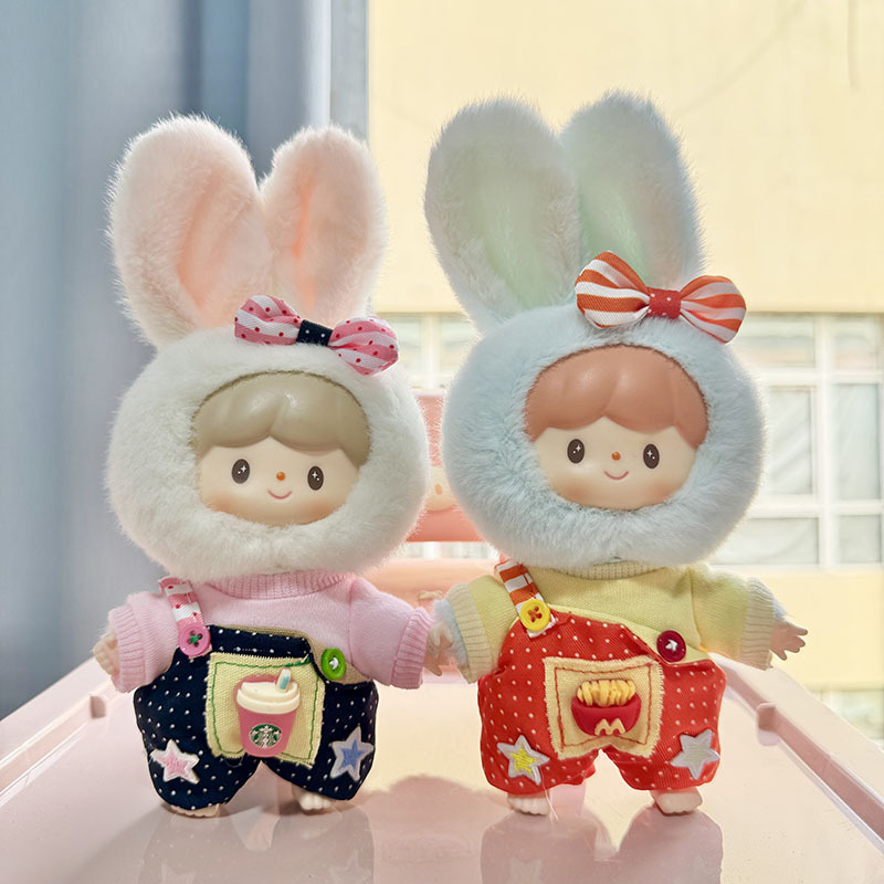 仅衣服】卓大王美味兔兔系列盲盒毛绒玩偶衣服单肩小黄鸭背带套装