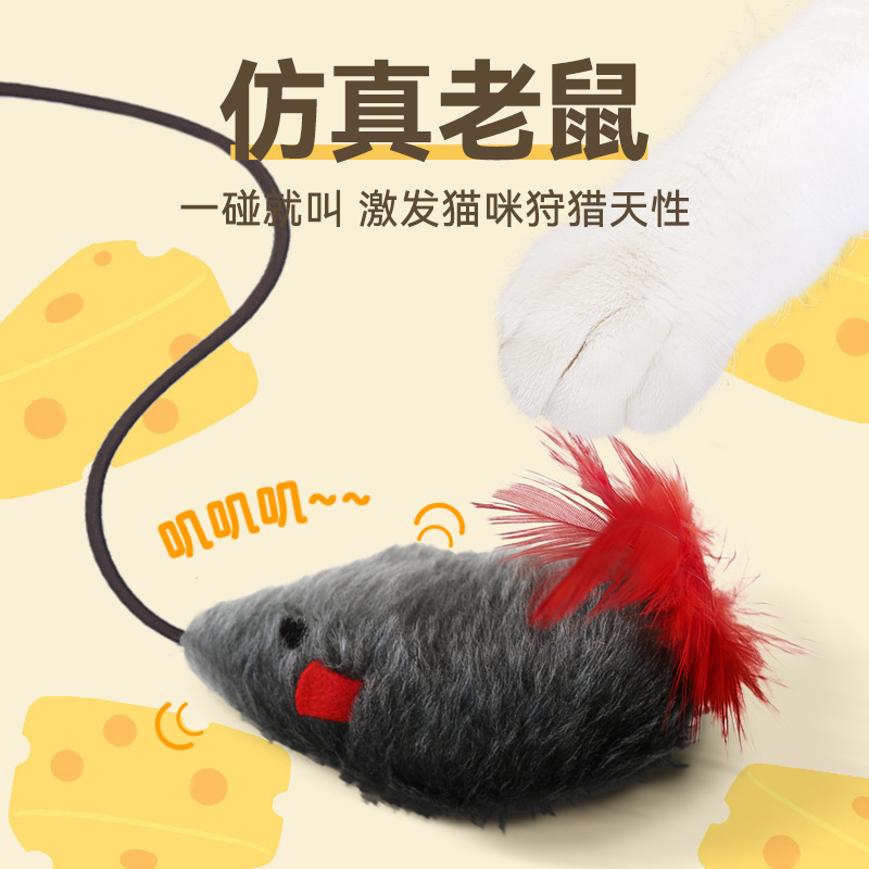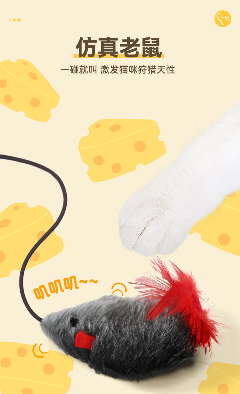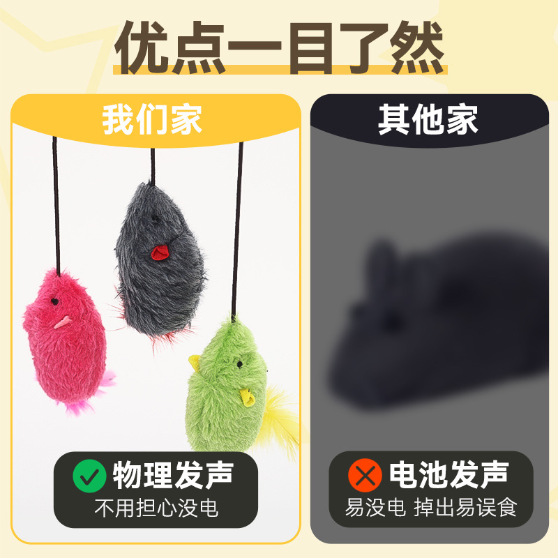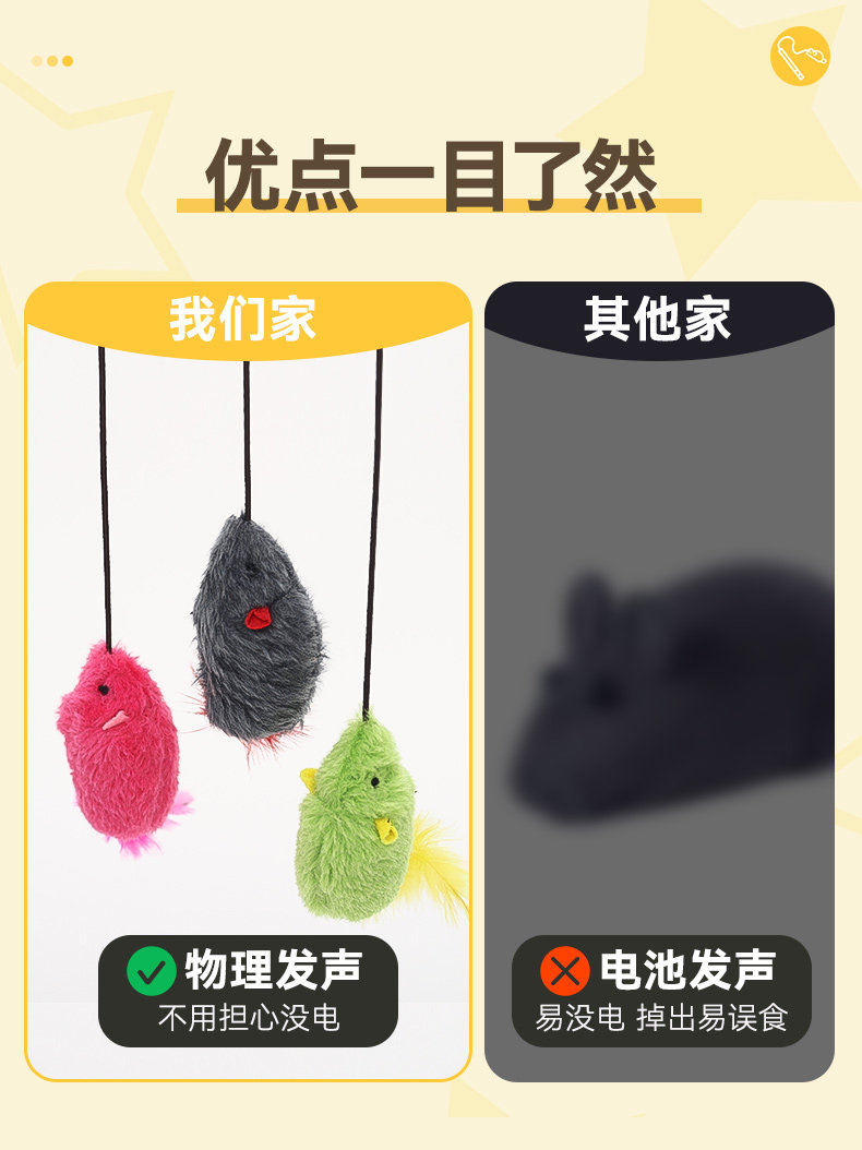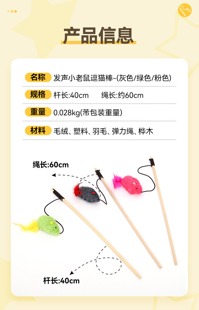 【品名】:HOOPET宠物发声小老鼠逗猫棒-(灰色/绿色/粉色)