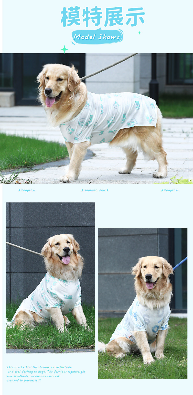 【品名】:大狗凉感防蚊T恤/大狗字母凉感T恤