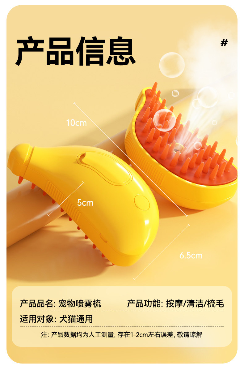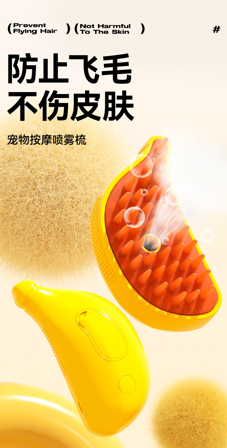 【品名】:hoopet香蕉喷气梳(黄色)