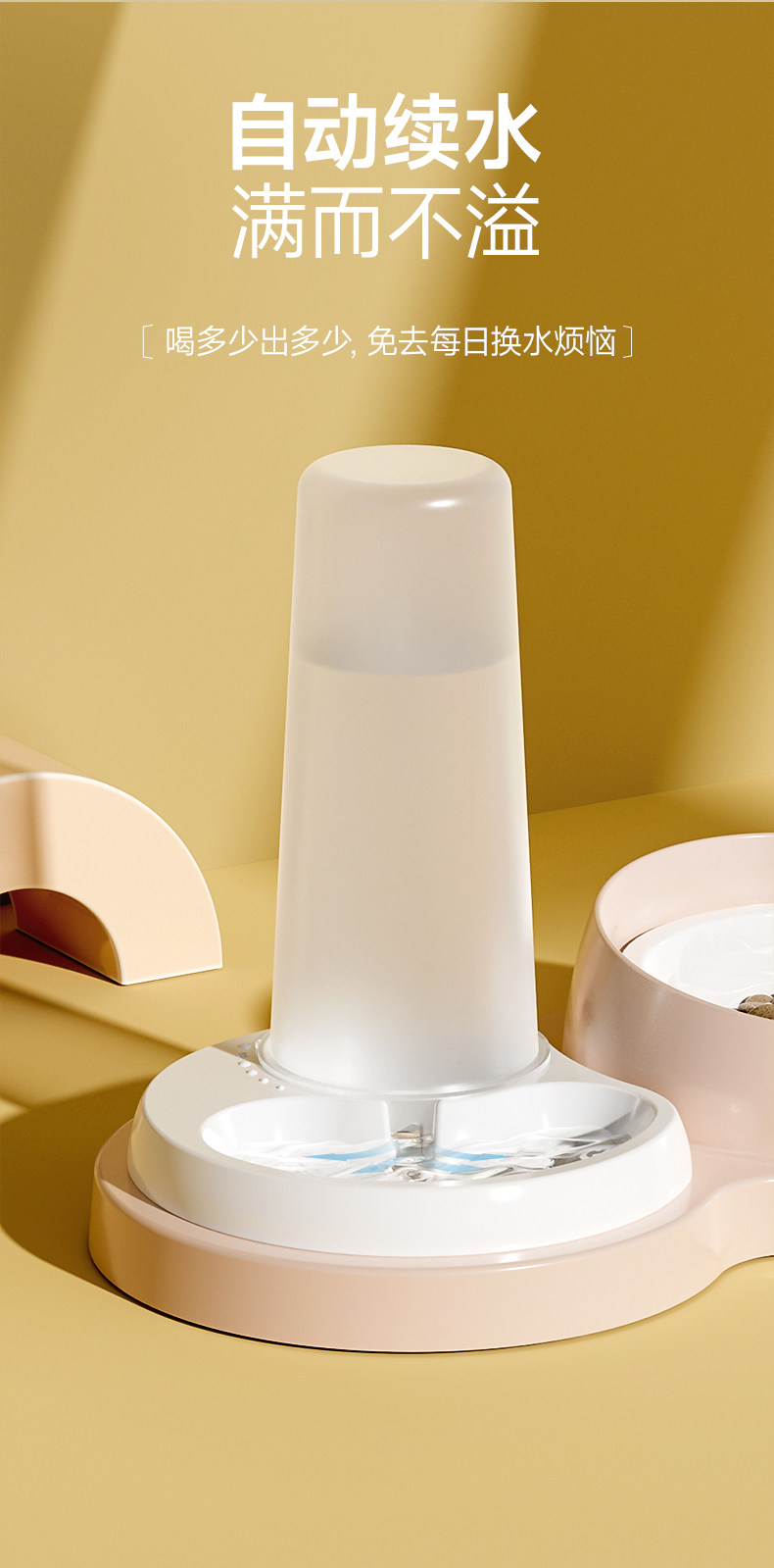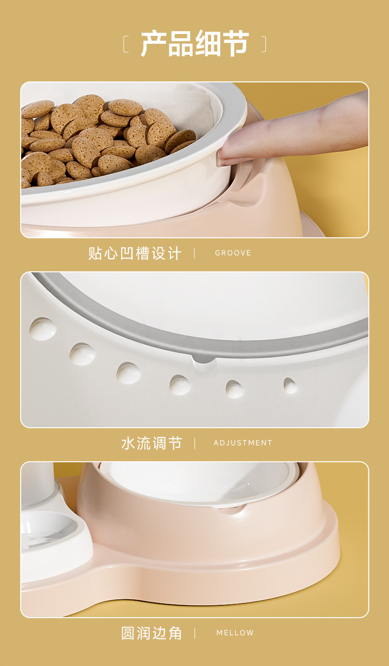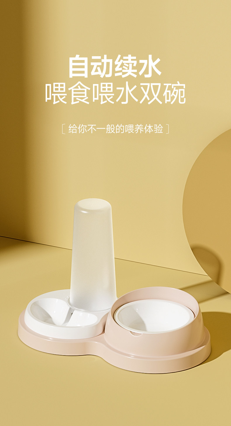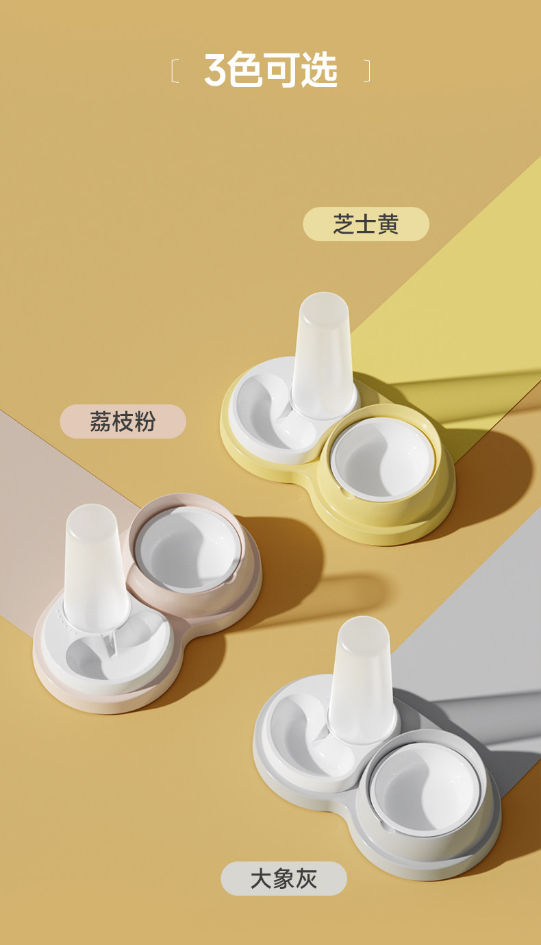 【品名】:HOOPET(不锈钢款/陶瓷款)水粮一体碗-(奶黄/灰色/粉色)
