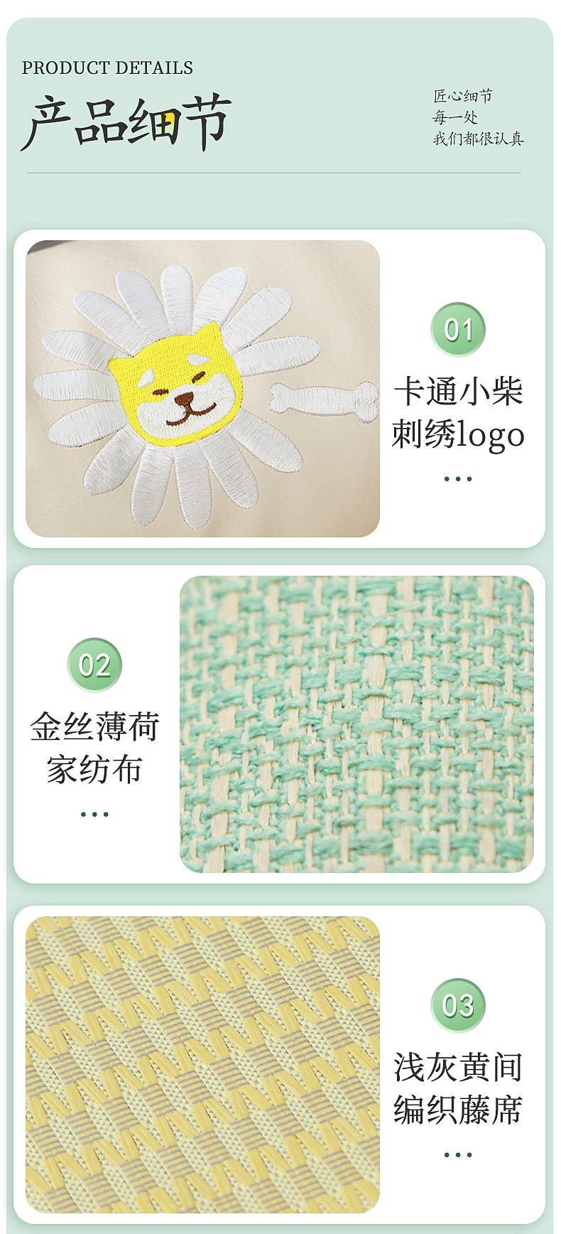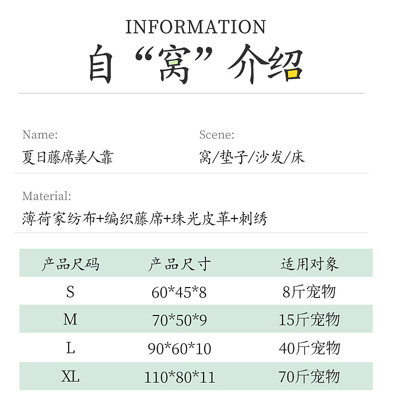 | * | 品名/Trade name | 雏菊小柴靠背凉席厚垫(S/M/L/XL) |