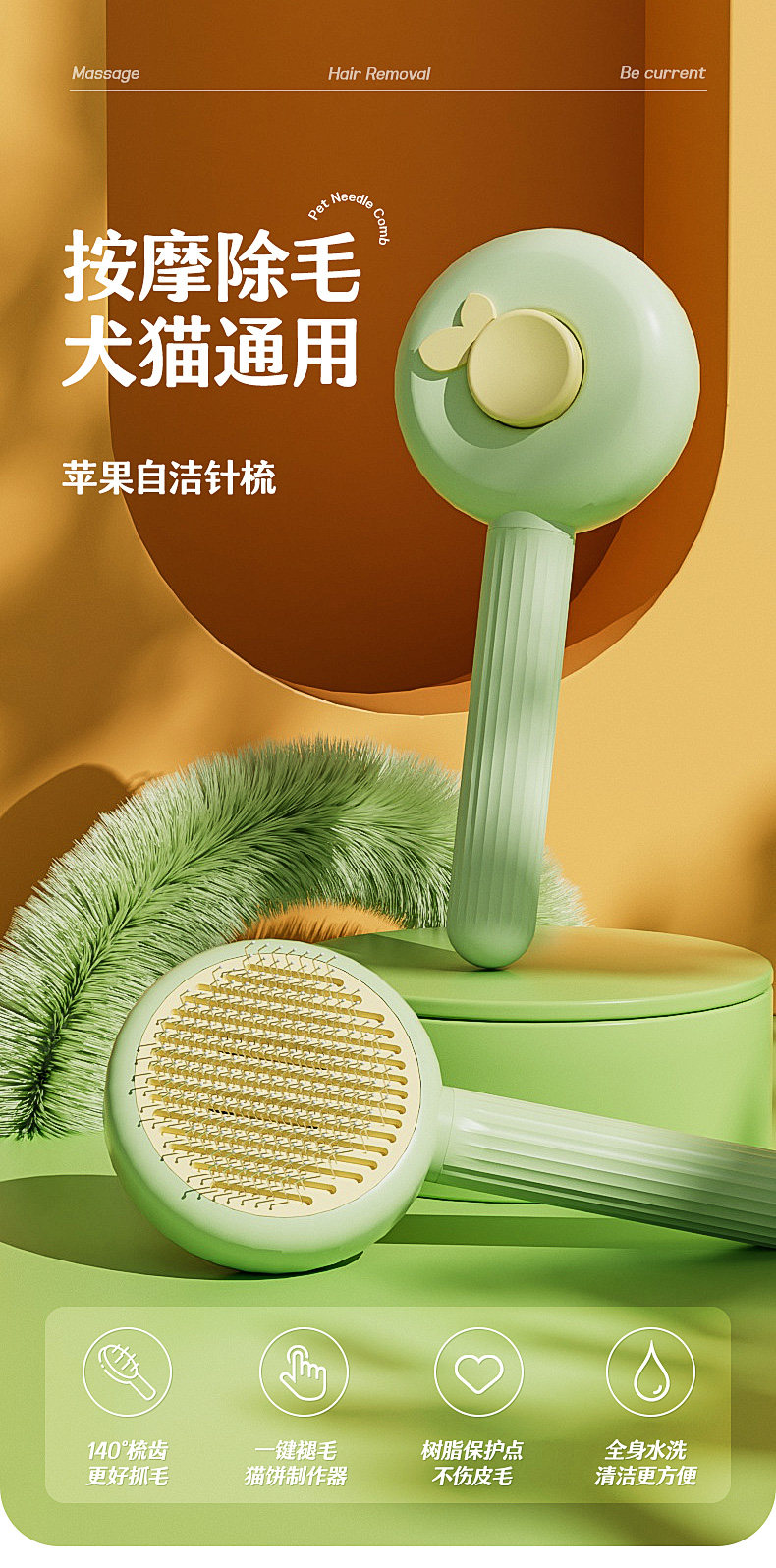 【品名】:苹果针梳(绿色/杏色/橙色)