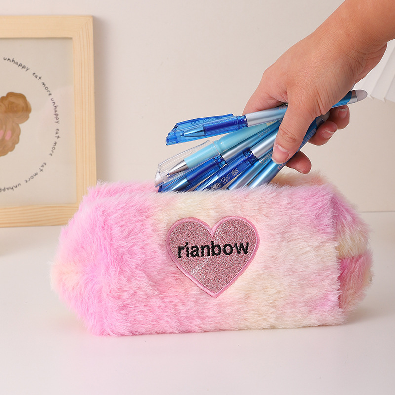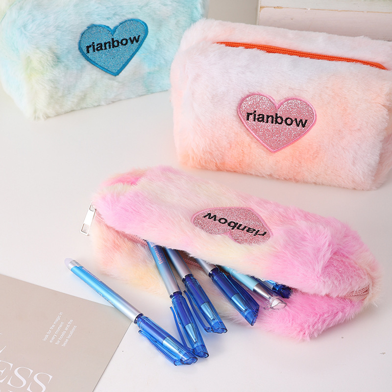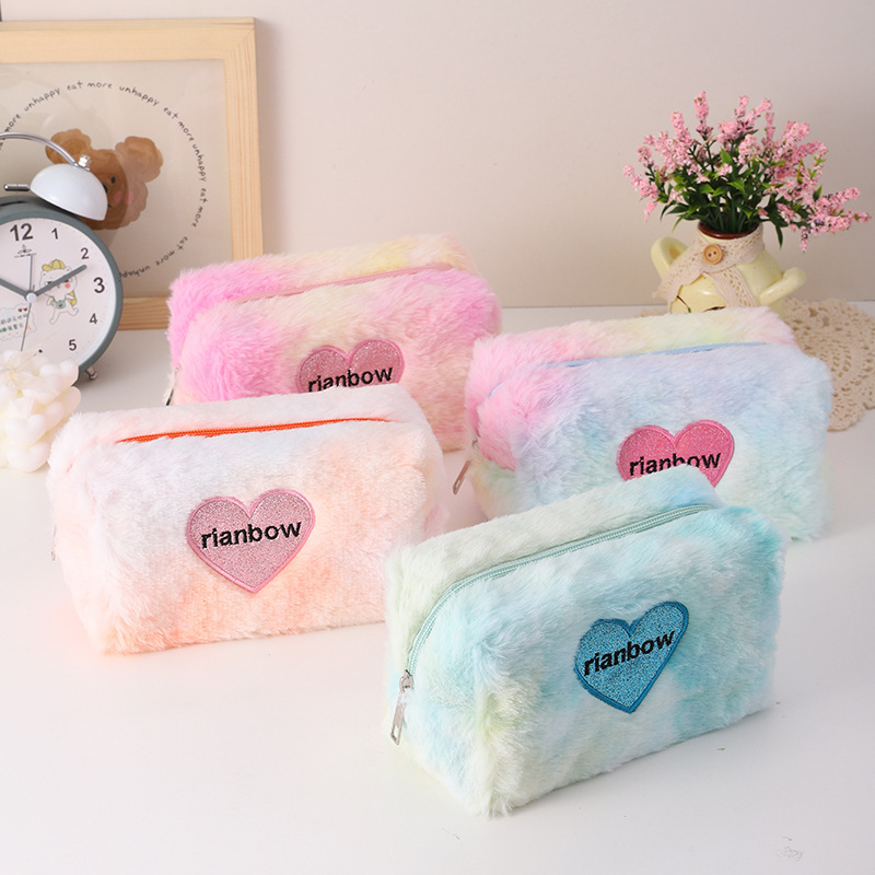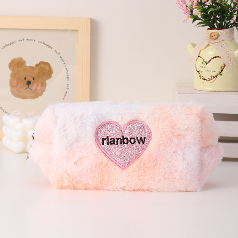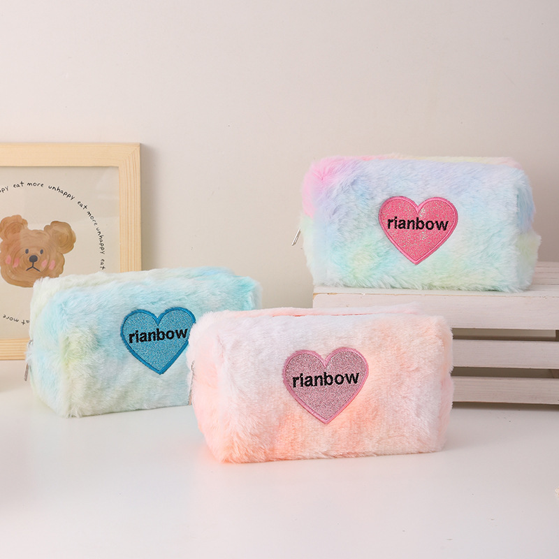 暖暖冬日渐变色爱心化妆包复古化妆包立体可爱口红收纳包文具袋