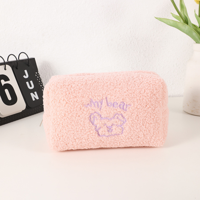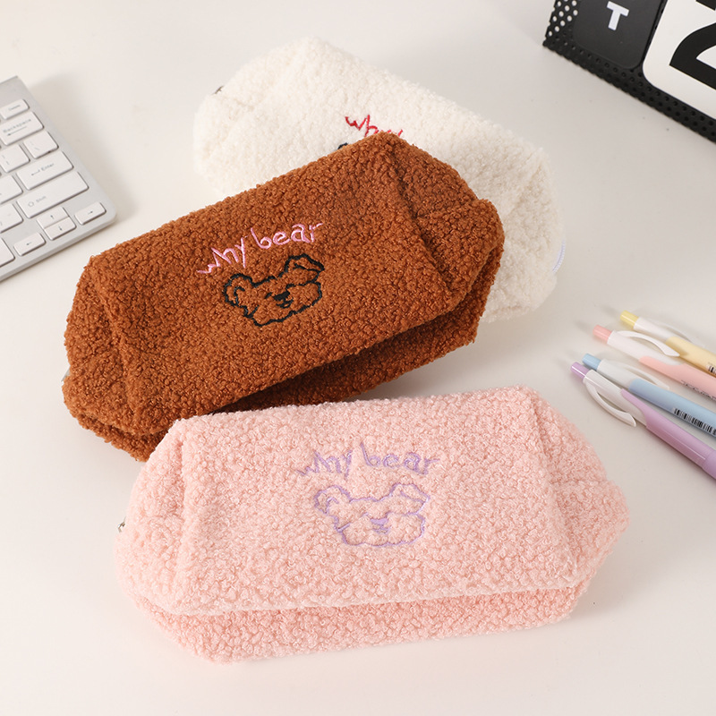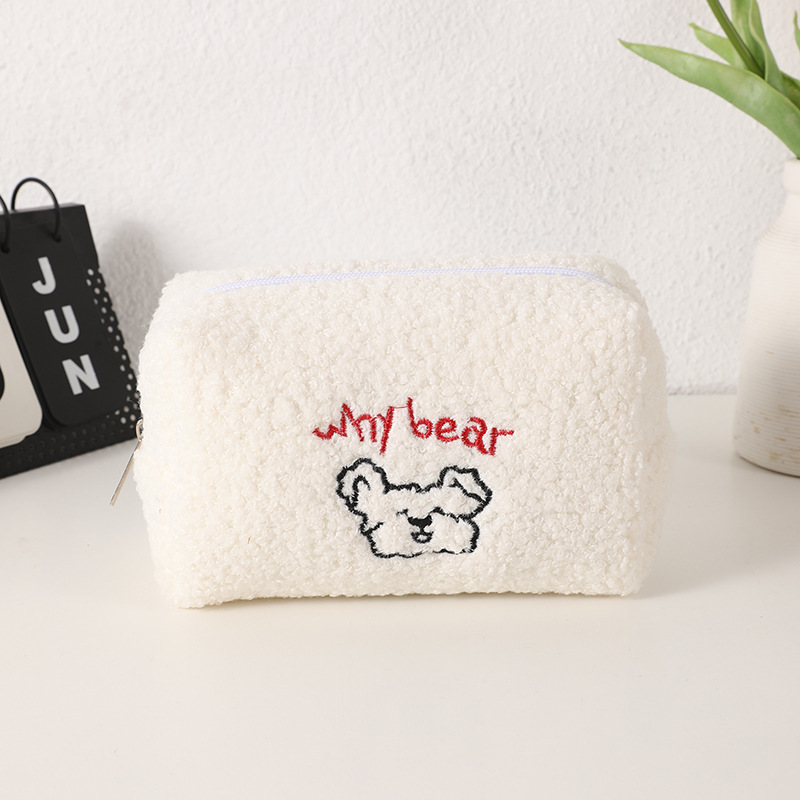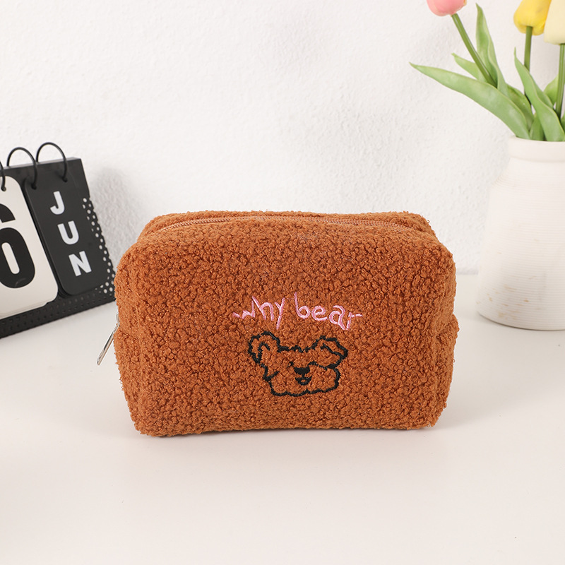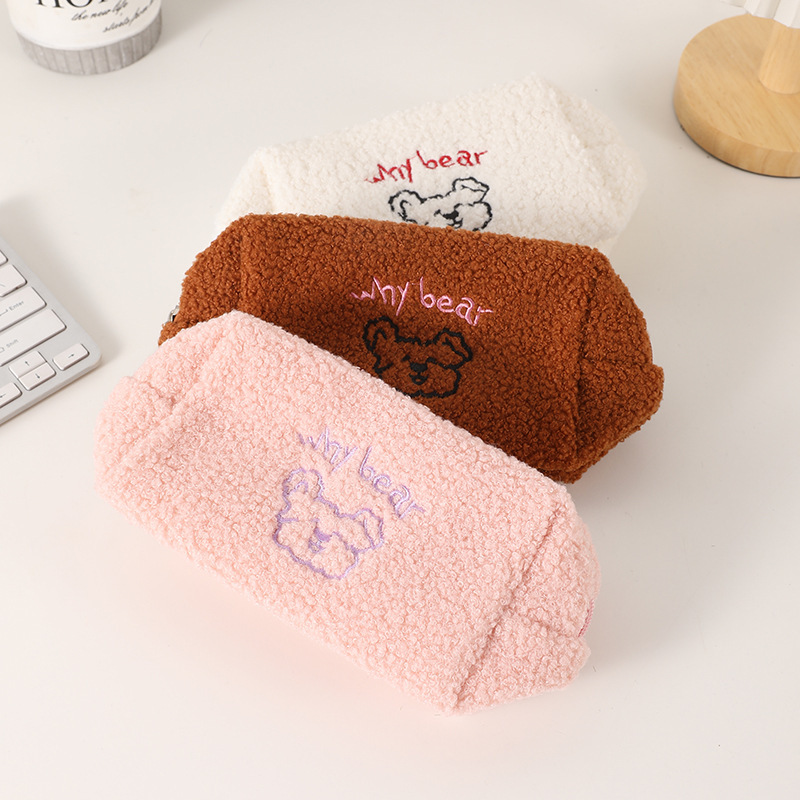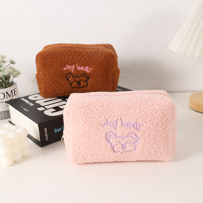 韩国ins可可小熊羊羔毛绒化妆包少女心大容量收纳袋笔袋