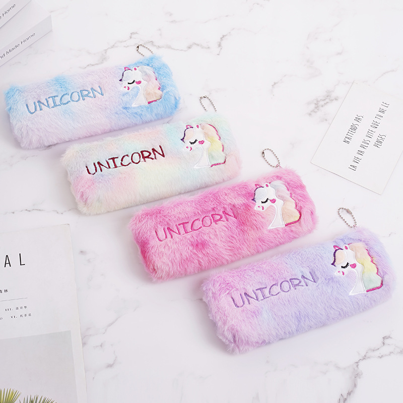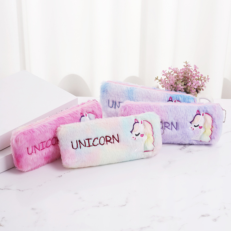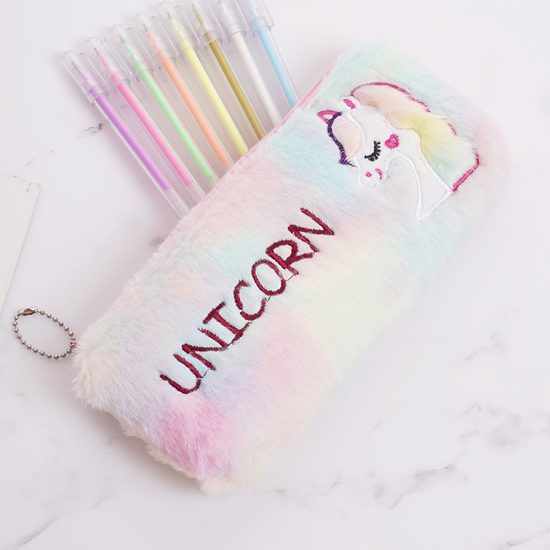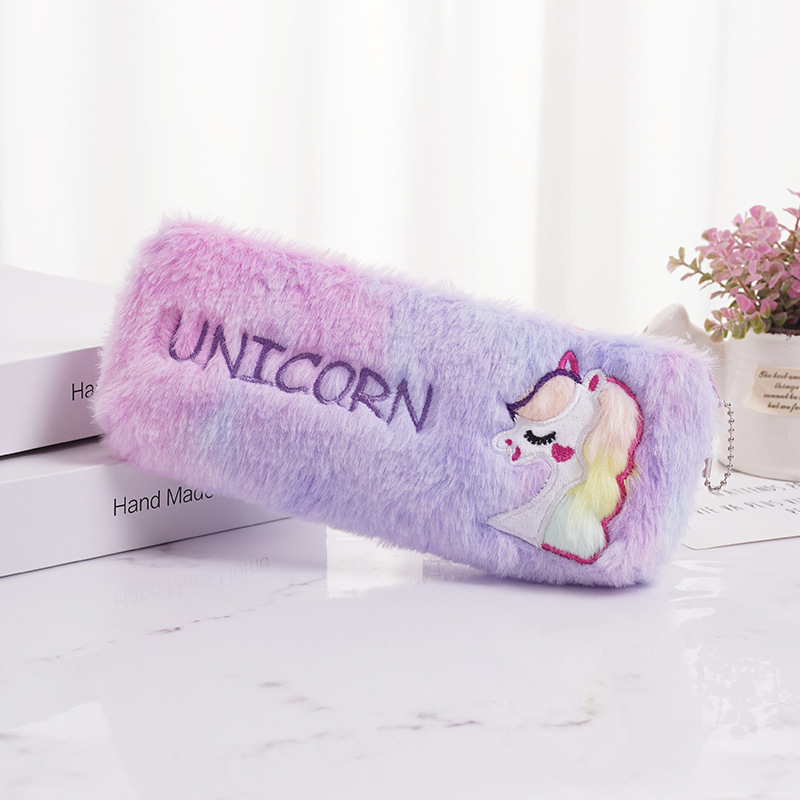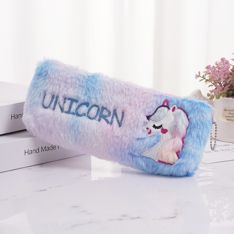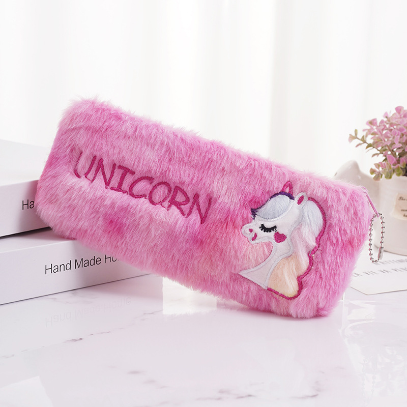 厂家批发跨境款可爱彩毛独角兽毛绒大容量笔袋学生文具袋收纳袋 投诉