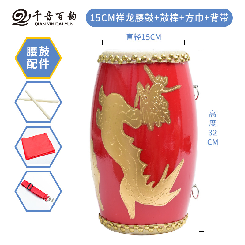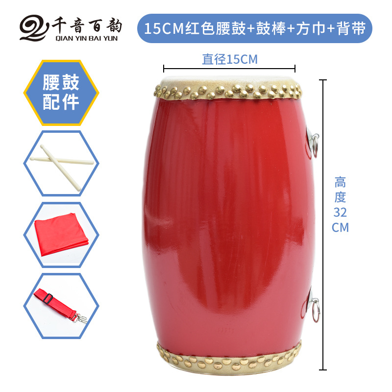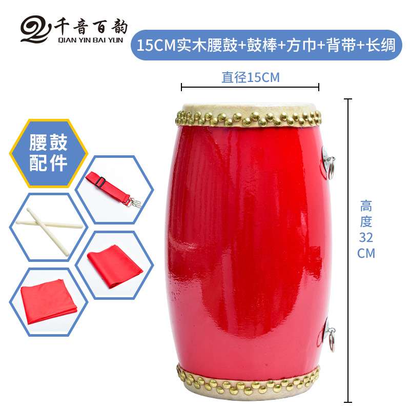 | 15CM木质头层腰鼓+鼓棒+背带+方巾+4米长绸+鼓包 | ¥5500 | 3659件可售 |