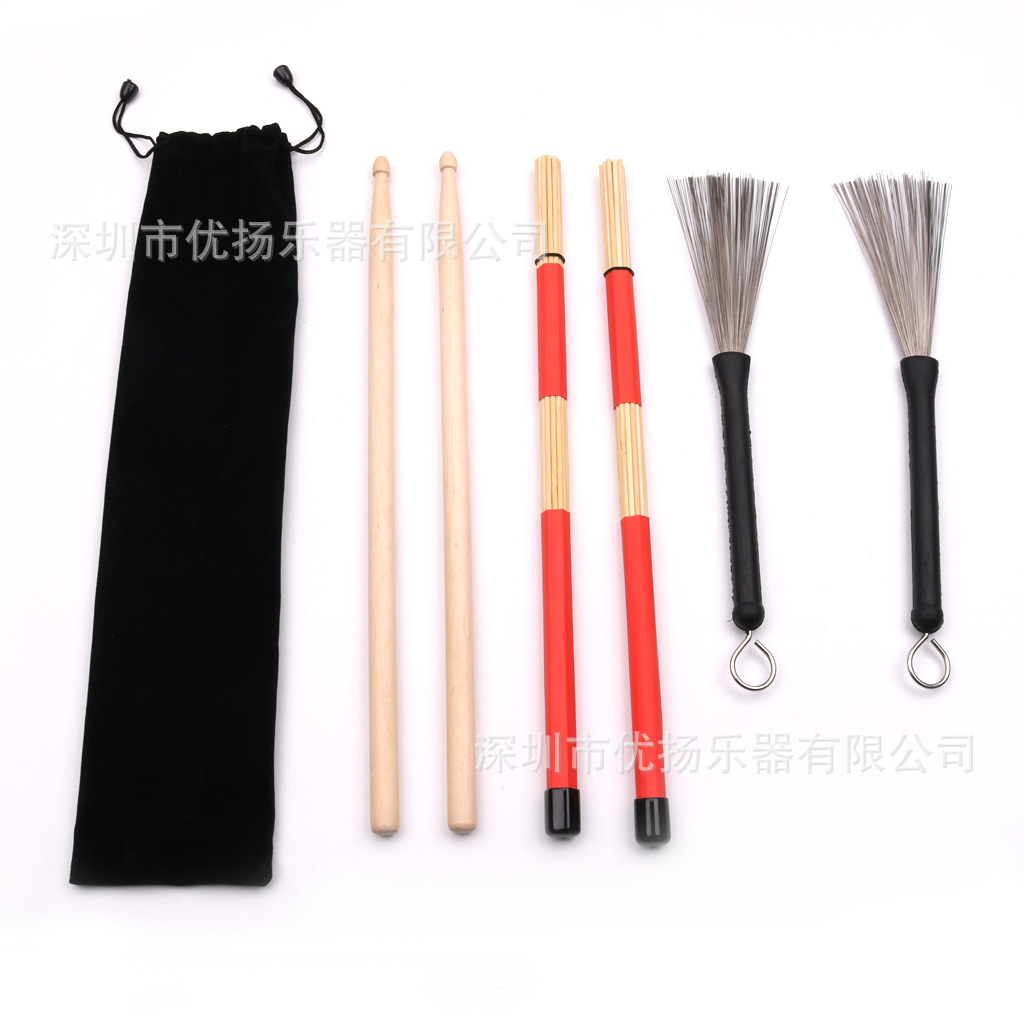 19束竹棒鼓棒钢丝鼓刷  束口收纳袋 架子鼓爵士鼓 打击乐器配件