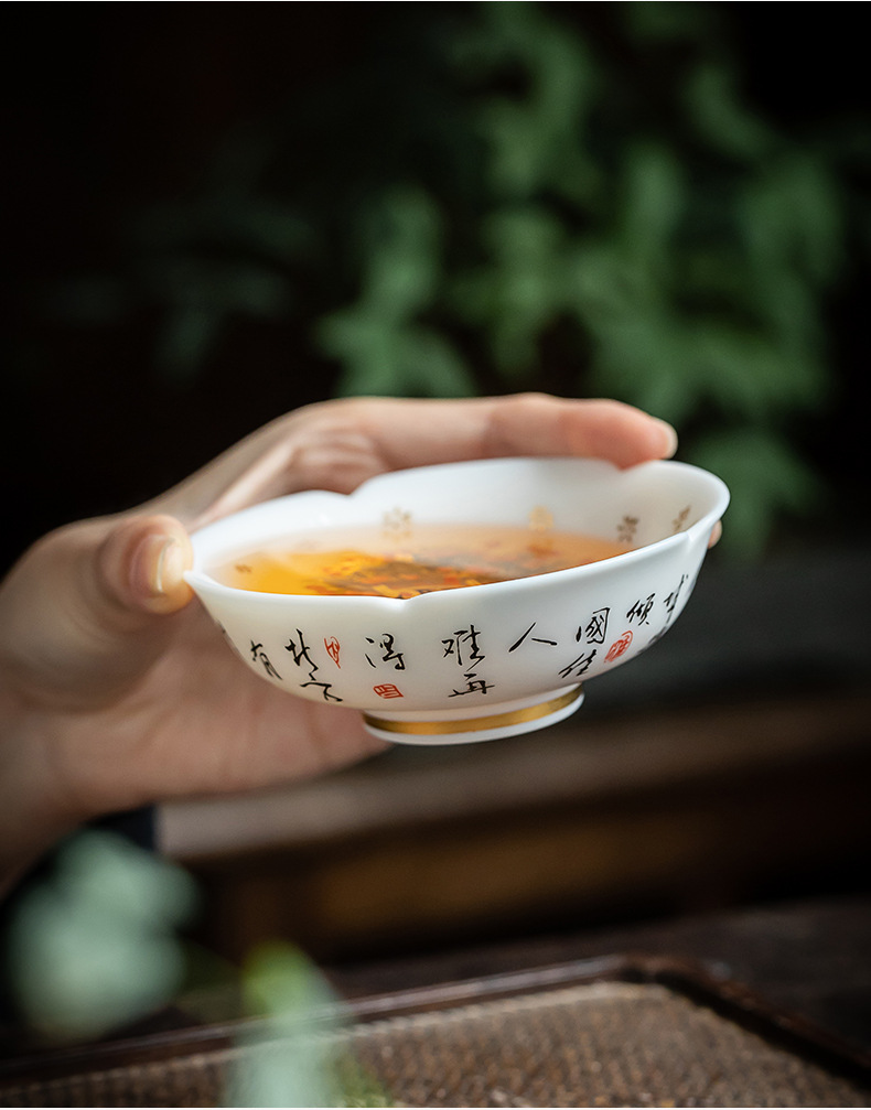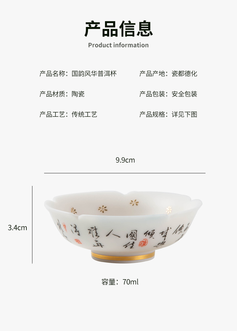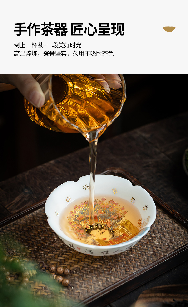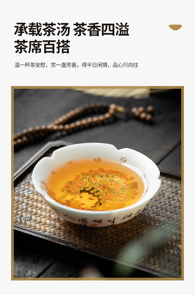 素烧羊脂玉瓷京剧花旦茶杯陶瓷花瓣普洱茶杯人物图案主人杯单杯 English | 投诉