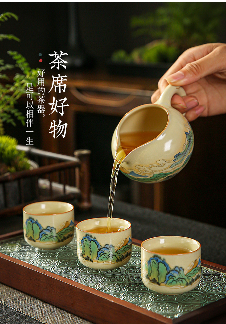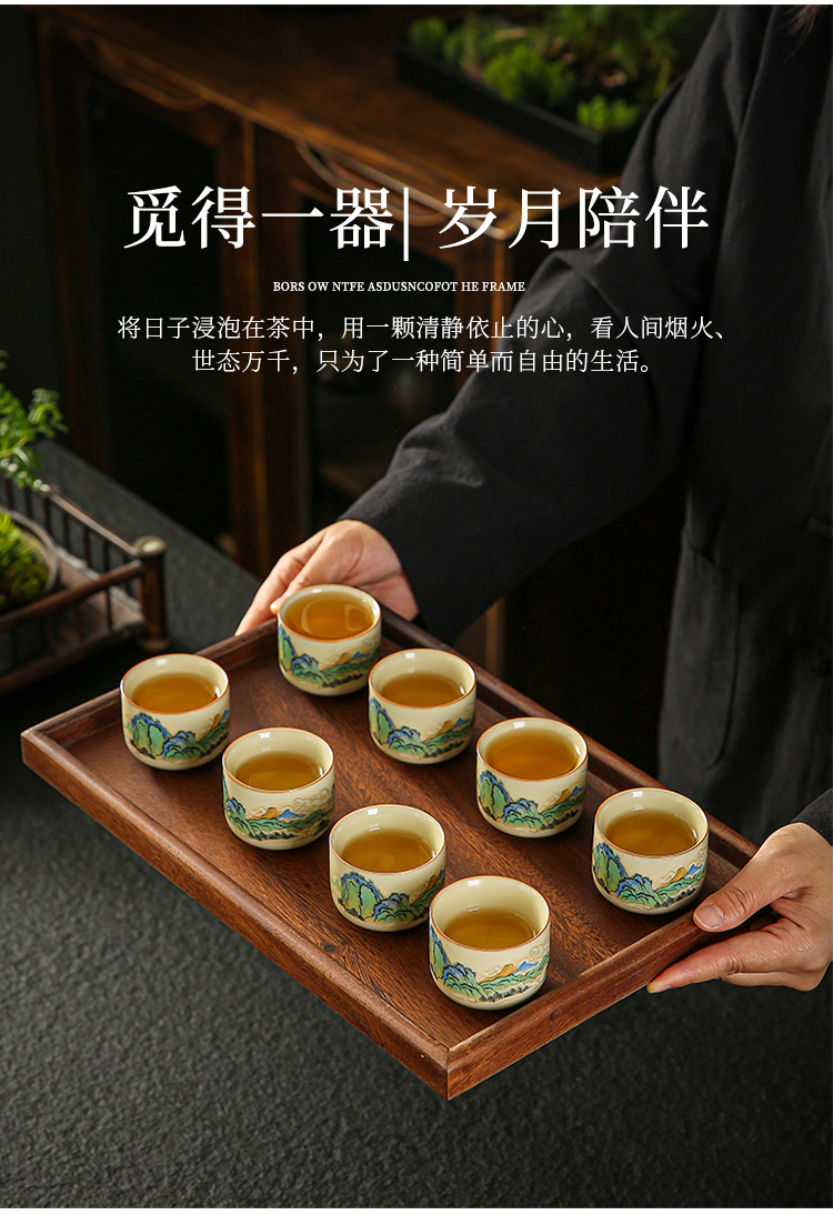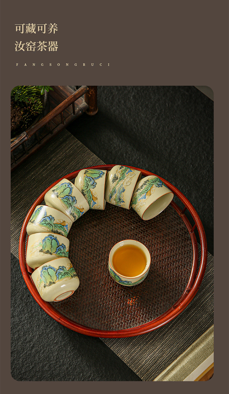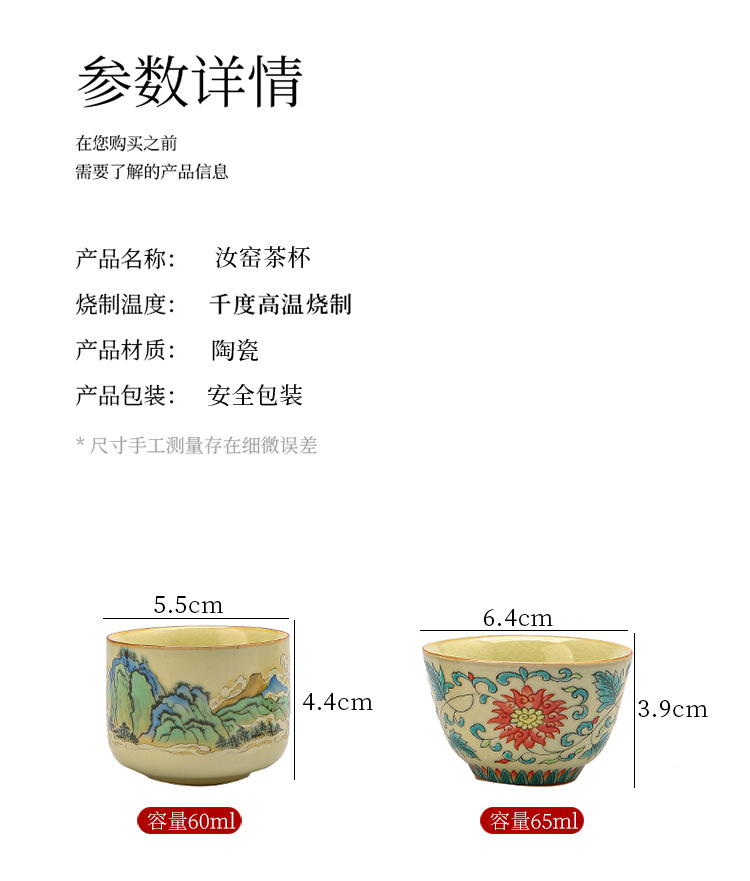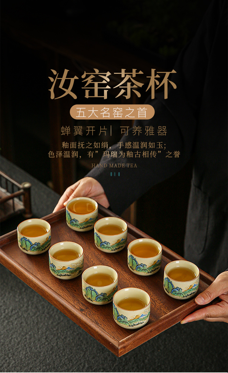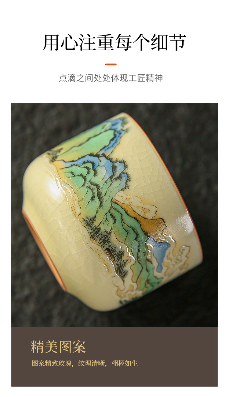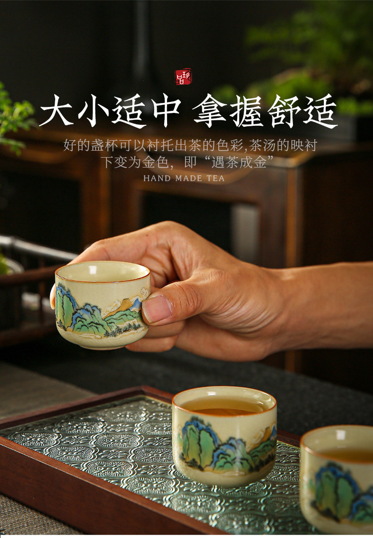 功夫茶杯满彩山水米黄汝窑茶杯开片冰裂纹陶瓷品茗杯茶盏 English | 投诉