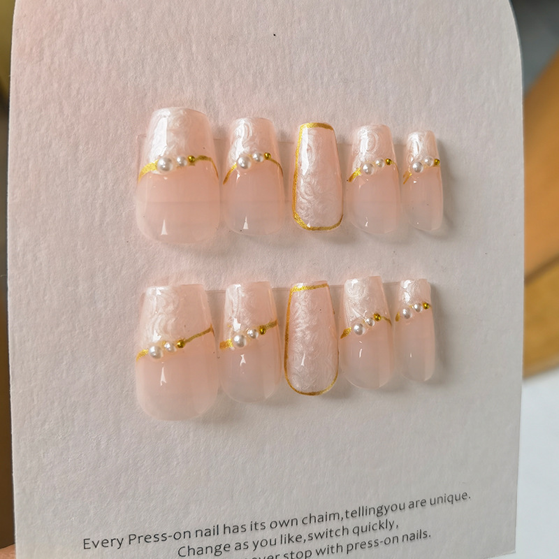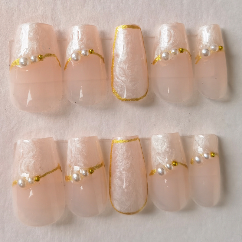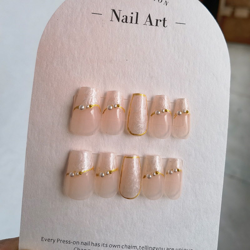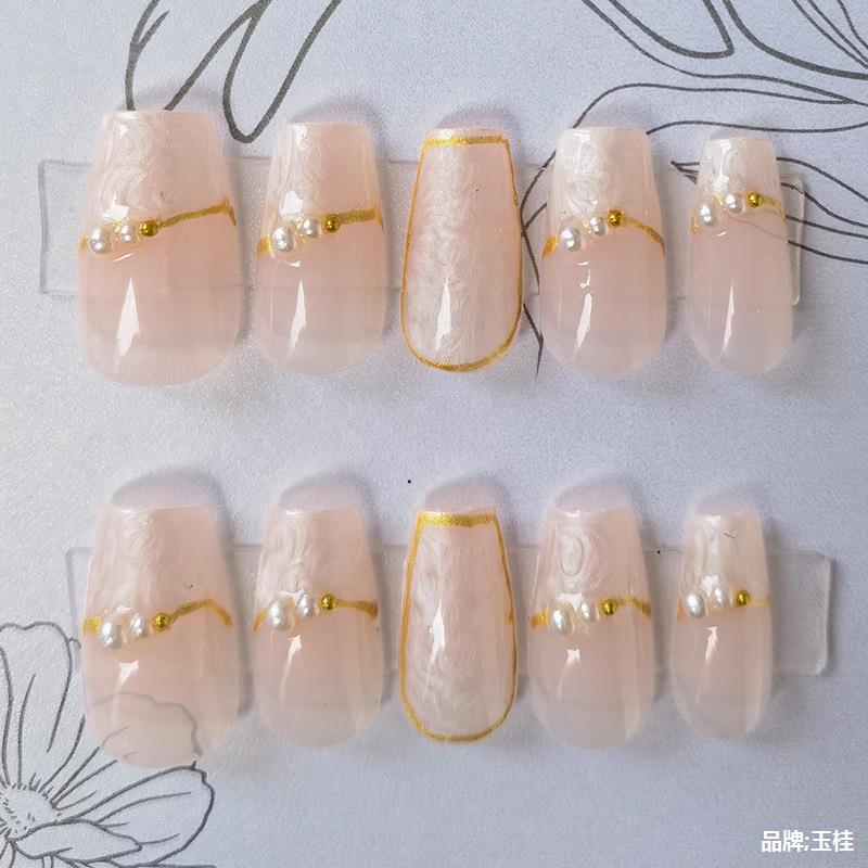 网红同款纯手工穿戴甲甲片美甲成品贴片裸色查理小姐新娘孕妇婚甲