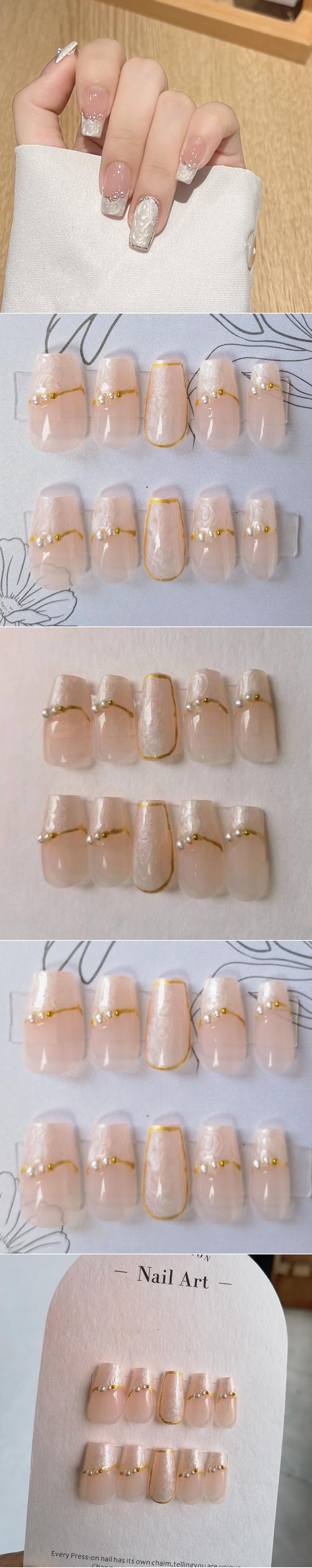 网红同款纯手工穿戴甲甲片美甲成品贴片裸色查理小姐新娘孕妇婚甲 投诉