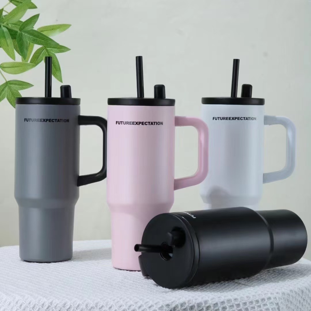 新款冰霸杯便携女生办公大容量高颜值杯子车载把手带吸管保温杯