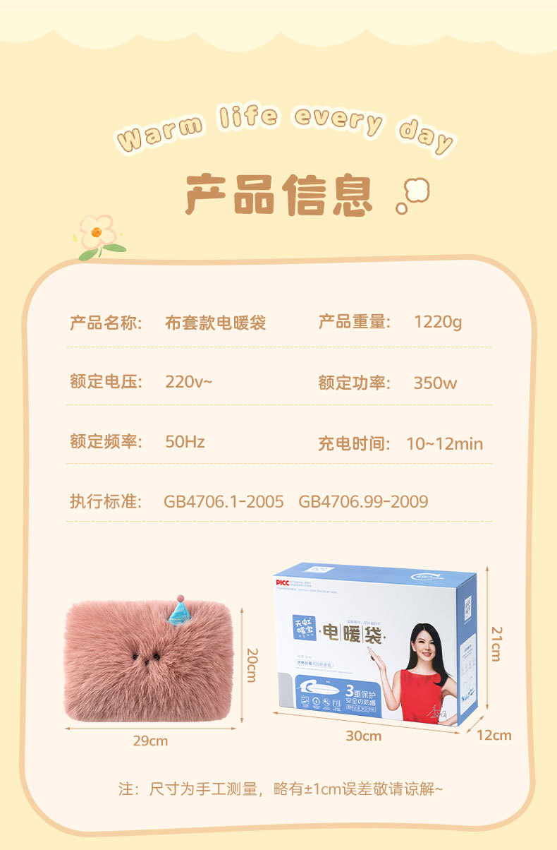 天虹新款电热水袋国标电热暖手宝长毛绒卡通暖水袋充电式防爆水袋 投诉