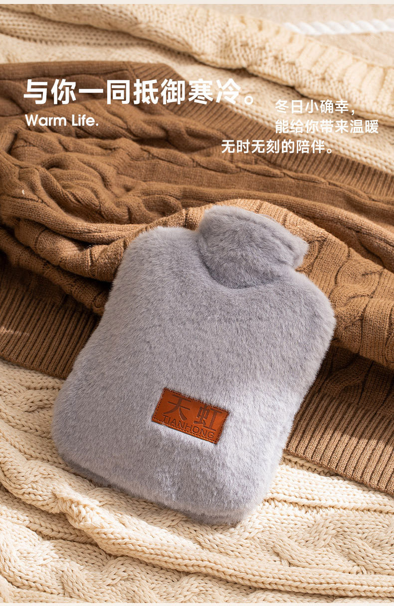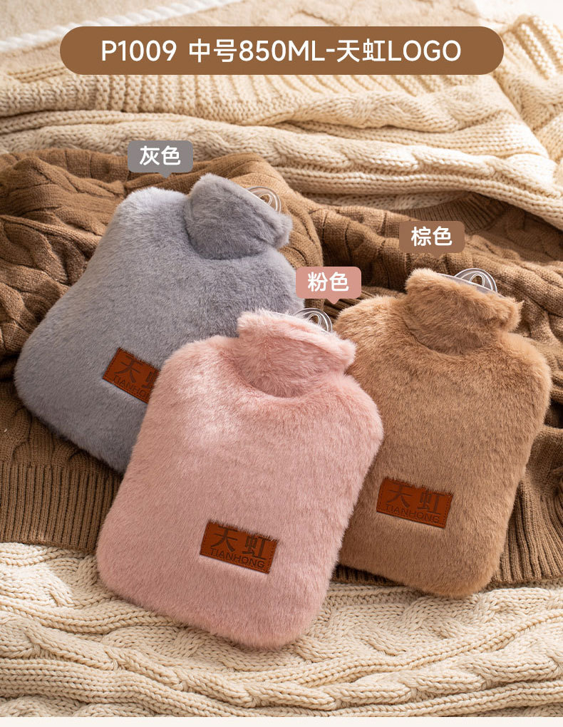 天虹PVC充水热水袋850ml带布套纯色简约暖手宝注水暖水袋防爆代发