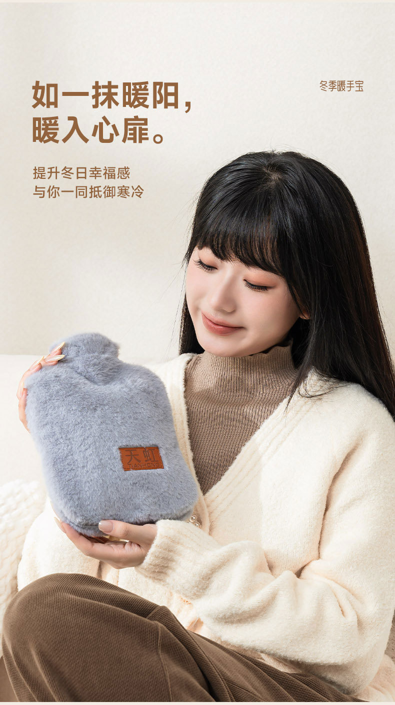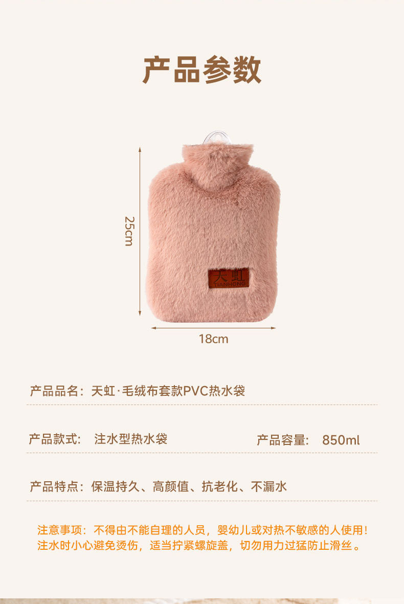 天虹PVC充水热水袋850ml带布套纯色简约暖手宝注水暖水袋防爆代发 投诉