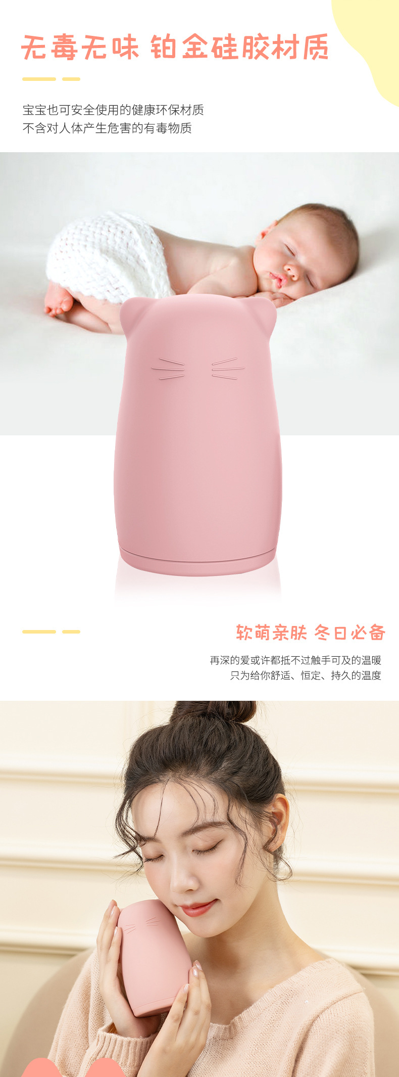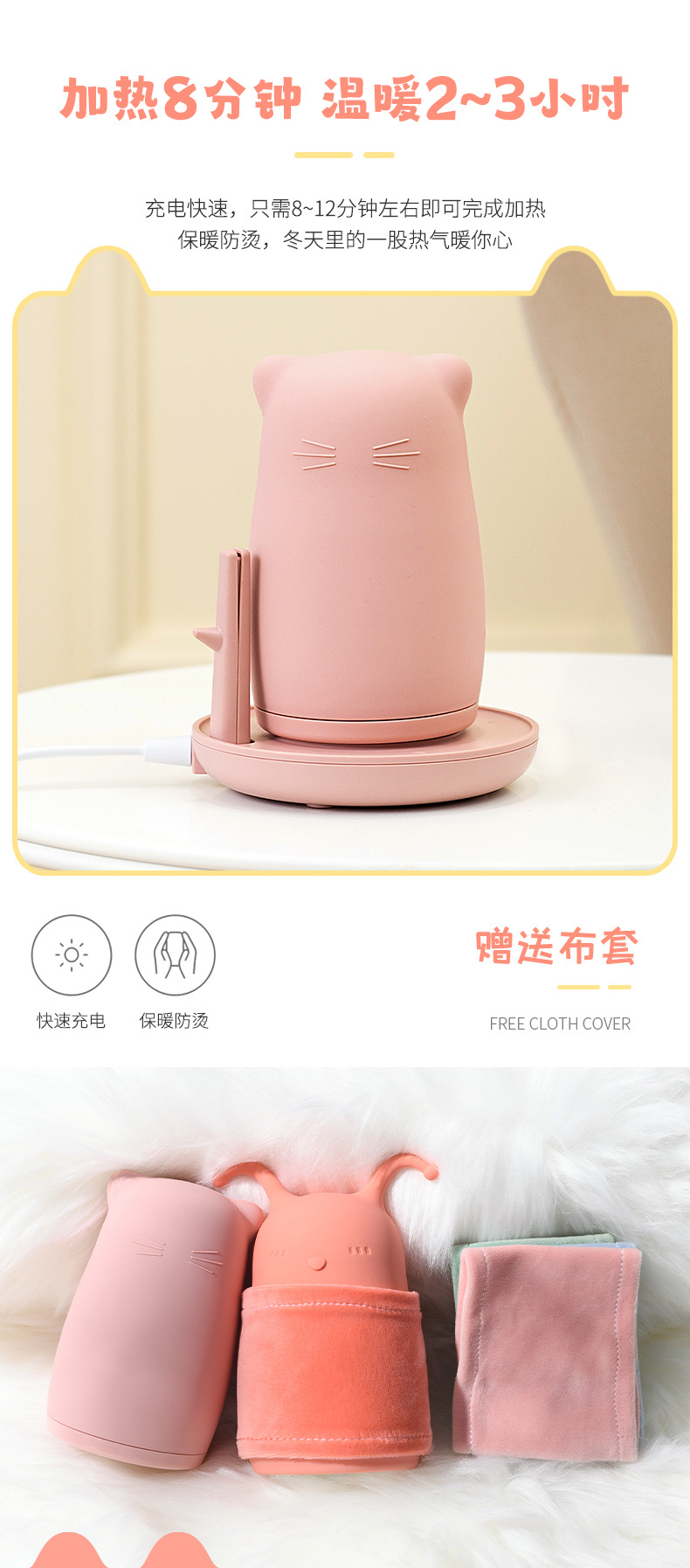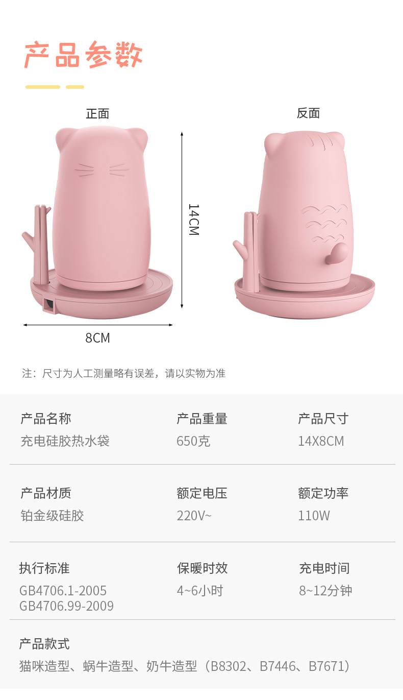 天虹立式硅胶电热暖手宝新款创意可爱卡通电热水袋国标暖宝代发 投诉