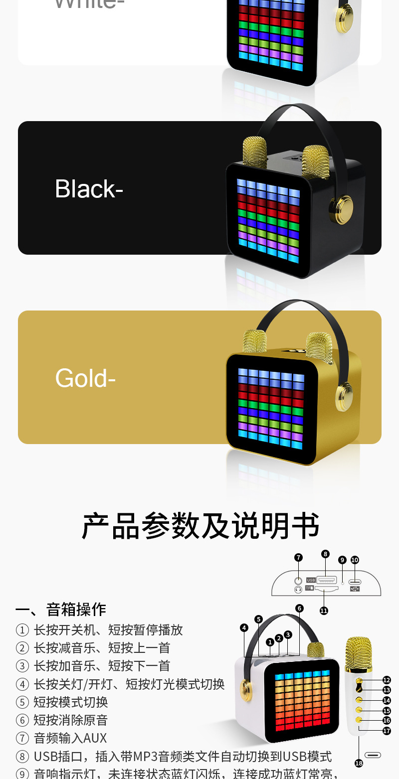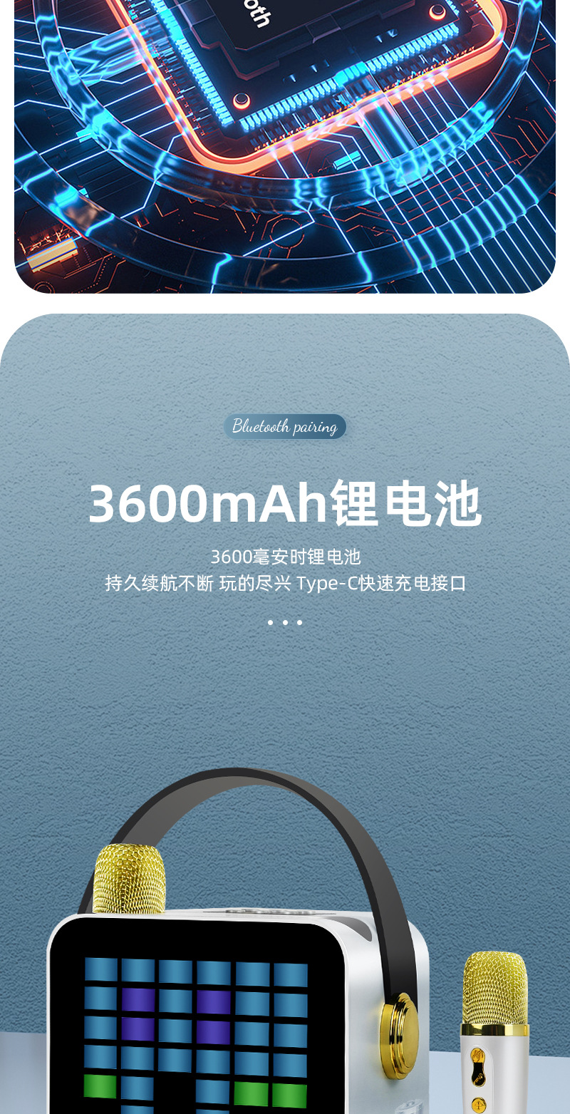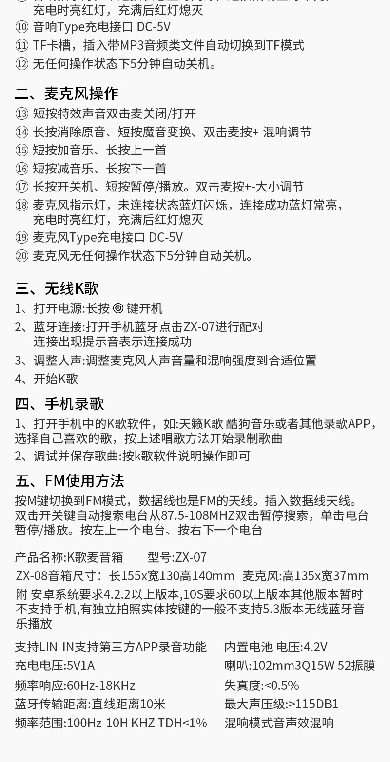 新款ZX-07蓝牙K歌音响一体无线麦克风家用全民家庭ktv蓝牙小音响