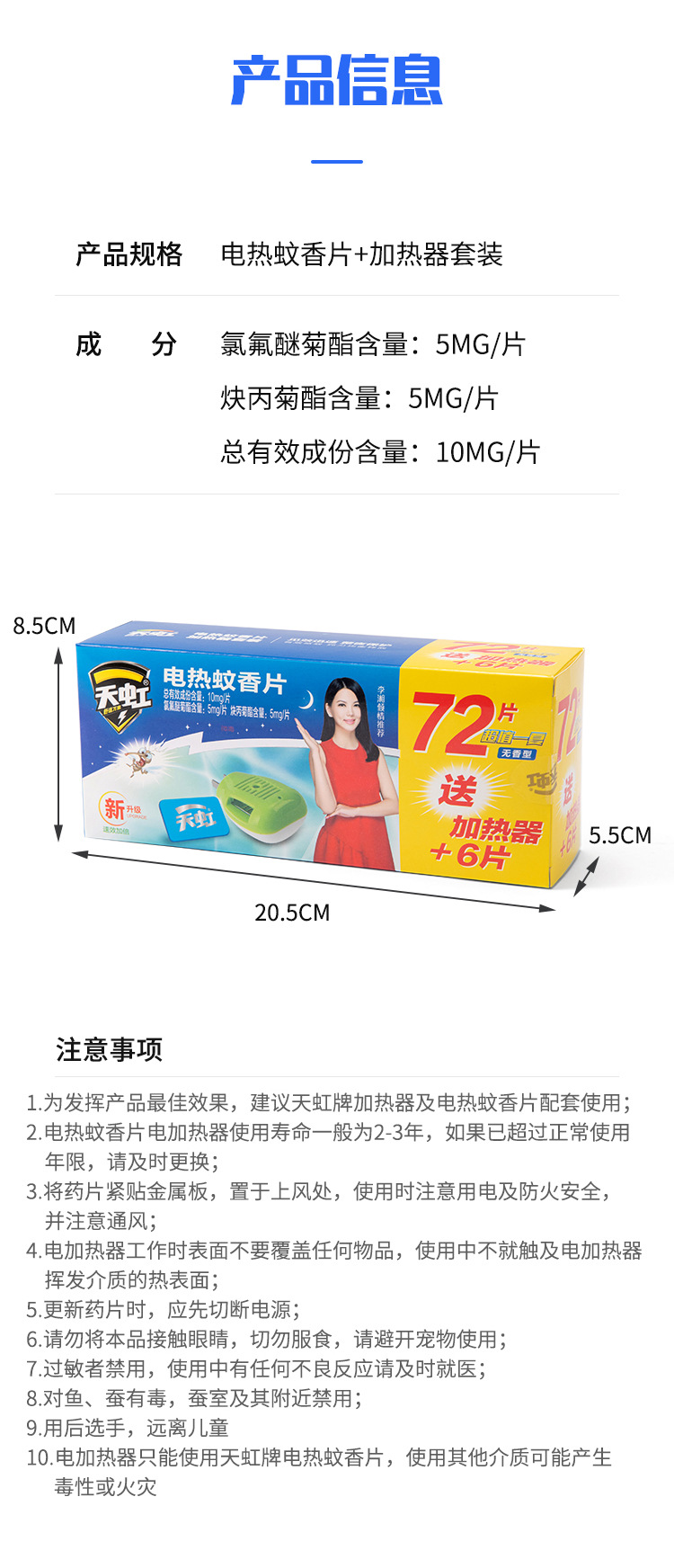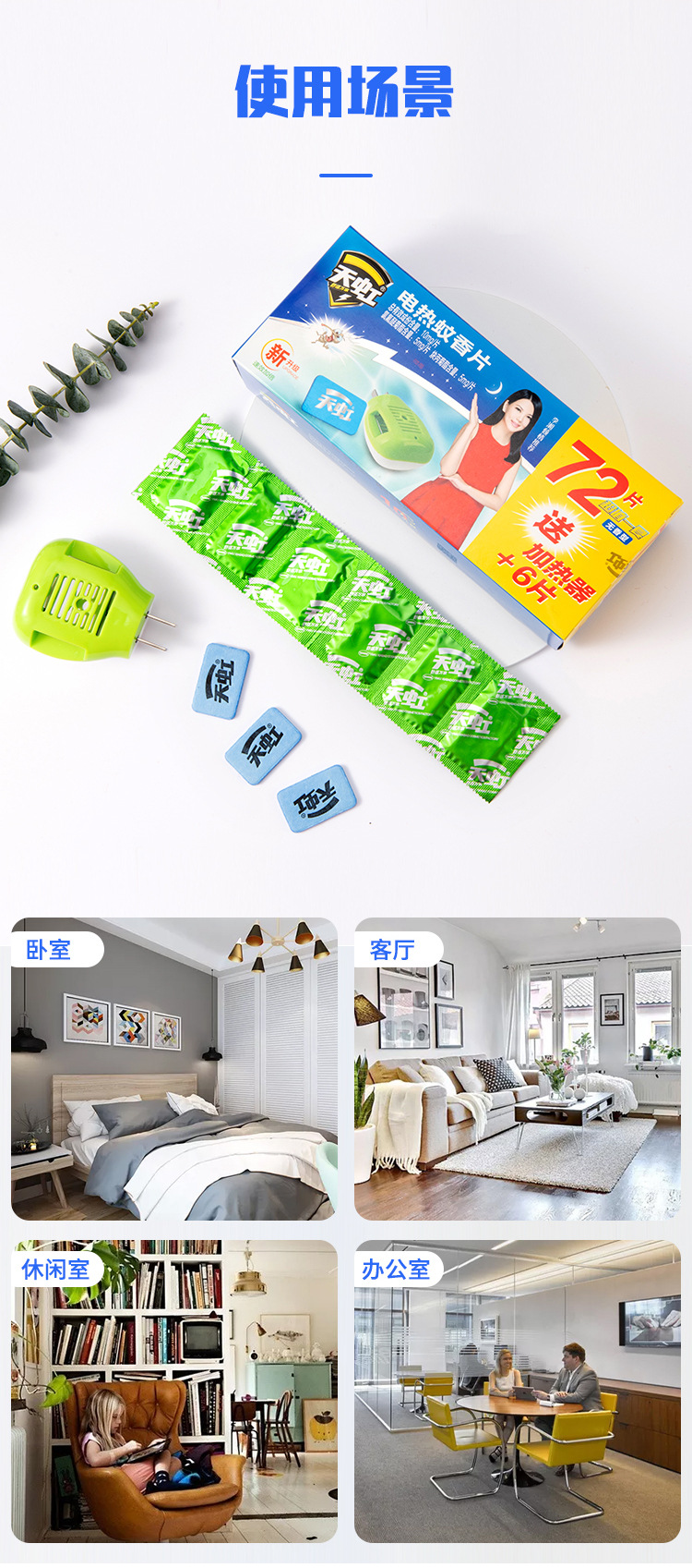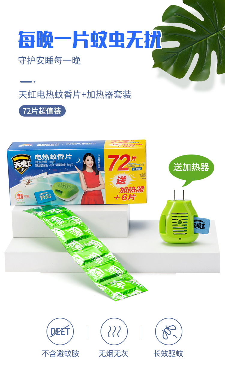 天虹新款电蚊香片72片超值蚊香片加热器套装环保无香型驱蚊片酒店