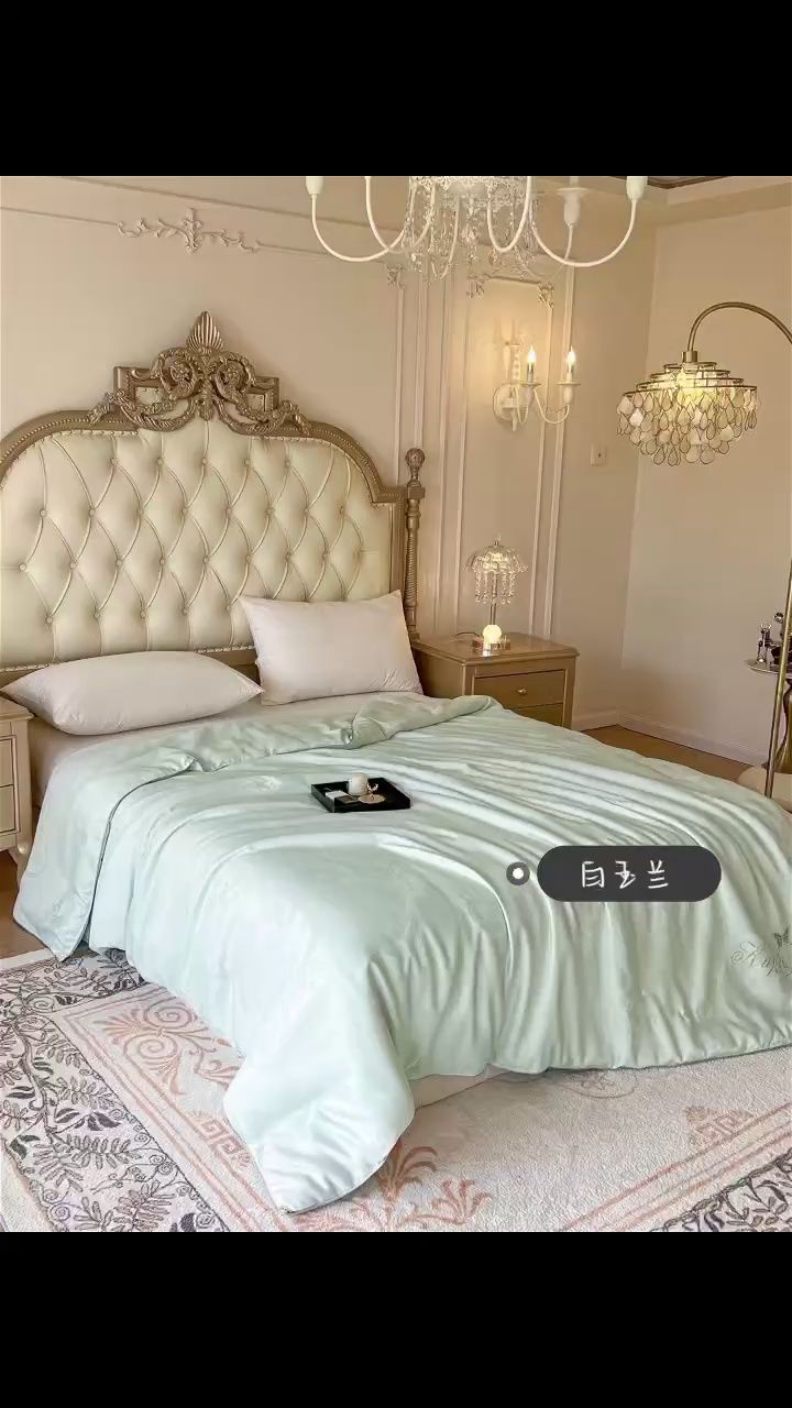 甄选100%天然桑蚕丝,填充:70%蚕丝+30%蚕丝棉,面料是日本五星级酒店专供的80支进口高端天丝贡缎面料,全部纯手工缝制~