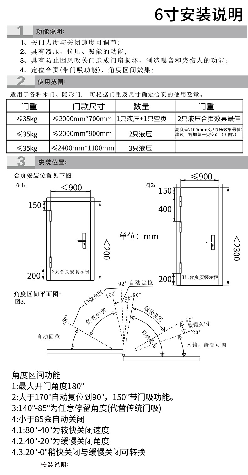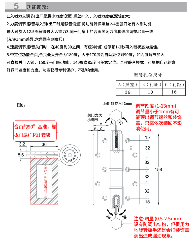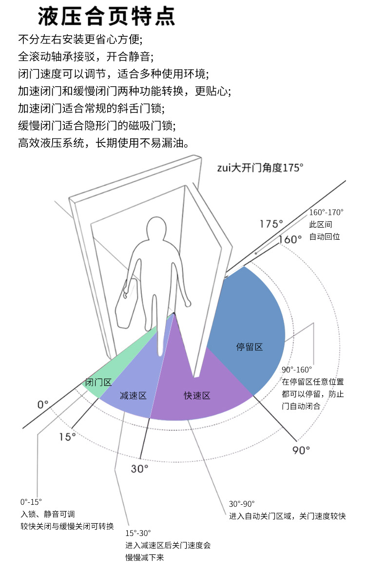 隐形门液压定位合页,自动闭门,静音缓冲