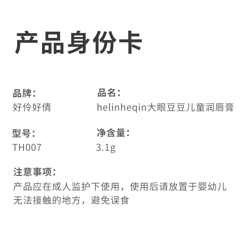 好伶好倩大眼豆豆儿童润唇膏可爱卡通植物萃取配方呵护童趣防丢扣专供出口 投诉