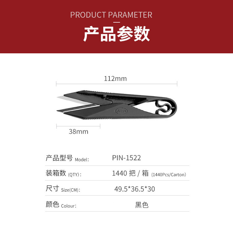 名称:PIN品字牌1422黑色塑柄纱剪