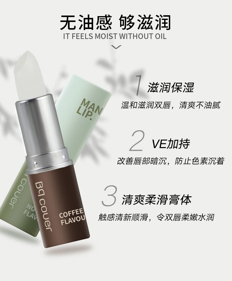 Bqcover佩翘封面男士酷润唇膏滋润不油腻吸收快补水滋润唇部专供出口 投诉