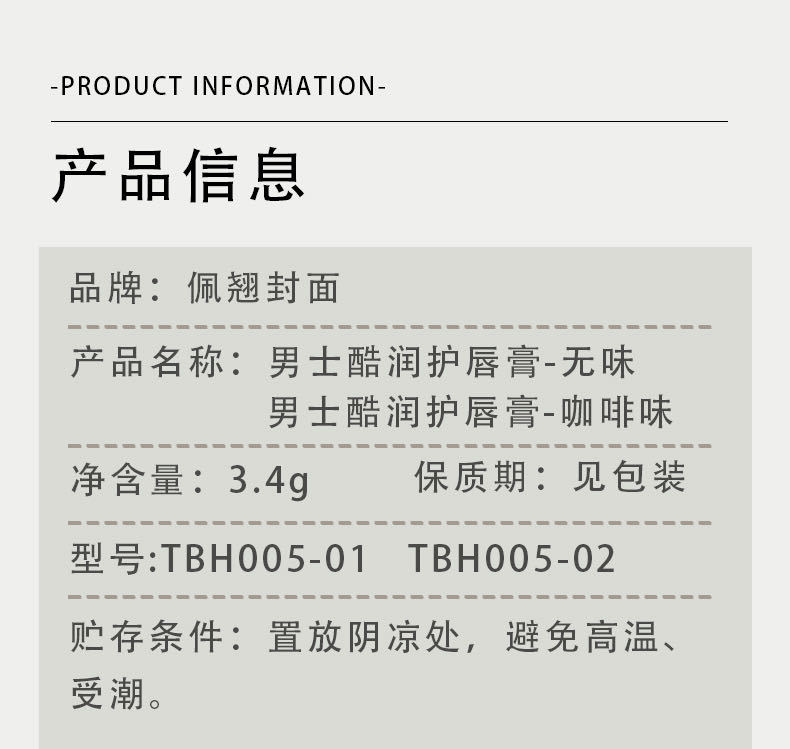 Bqcover佩翘封面男士酷润唇膏滋润不油腻吸收快补水滋润唇部