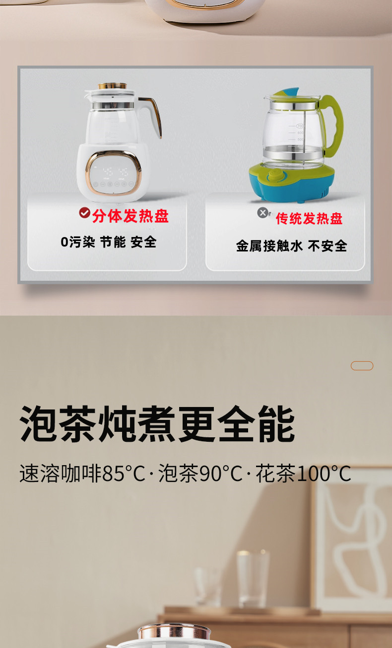 全玻璃恒温热水壶婴儿家用冲奶智能烧水保温专用一体泡恒温壶新款