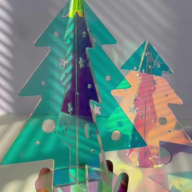 克力圣诞树 圣诞节创意布置装饰桌面摆件炫彩亚克力圣诞树