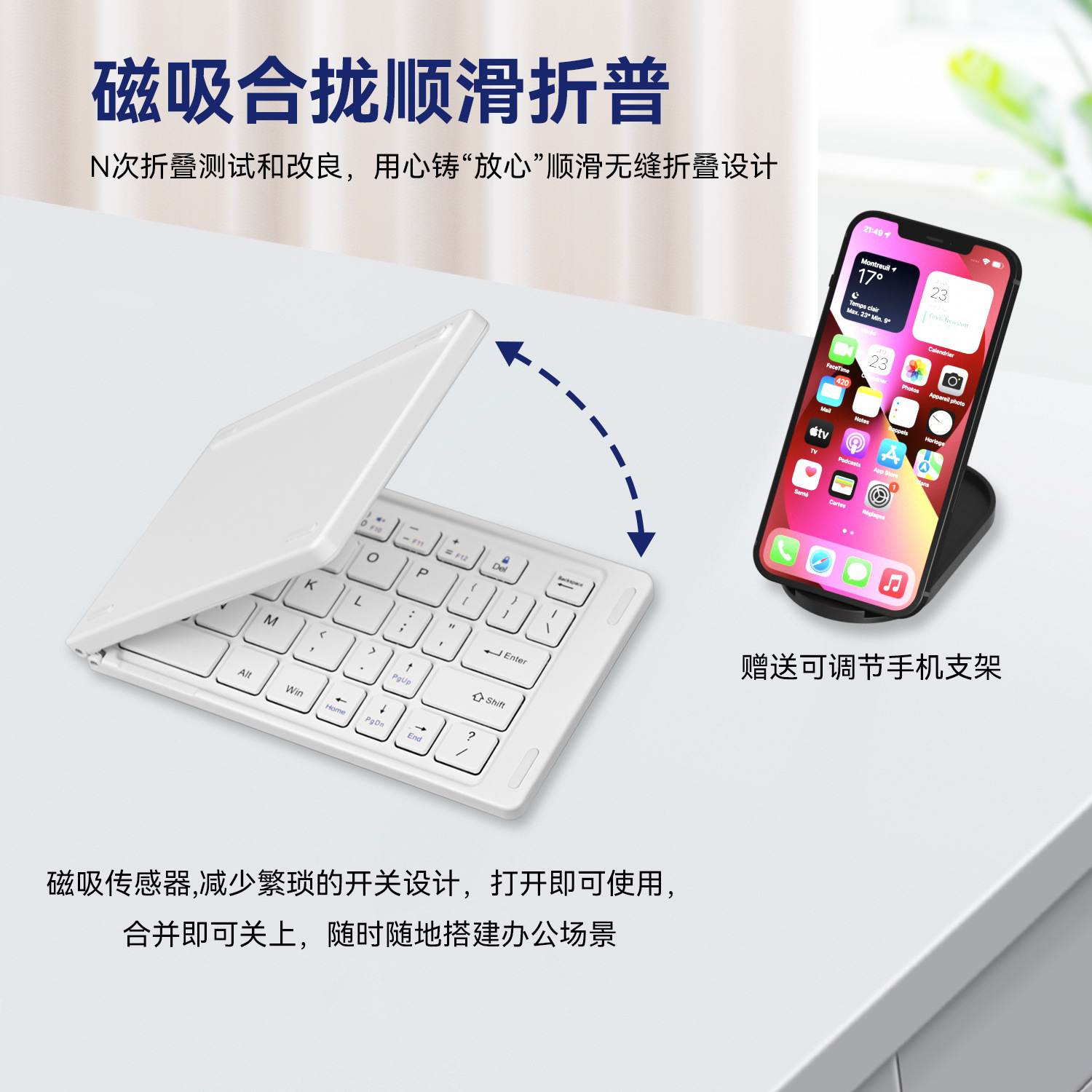 无线双折叠蓝牙键盘静音高颜值办公家用轻薄便携keyboard现货速发