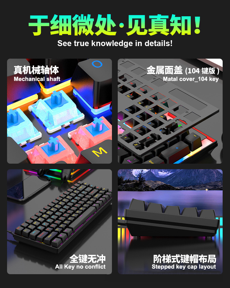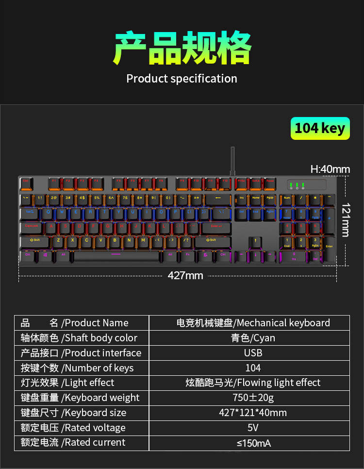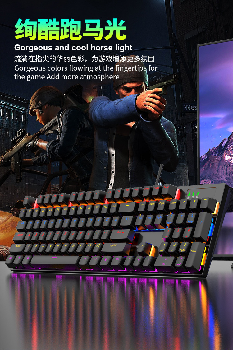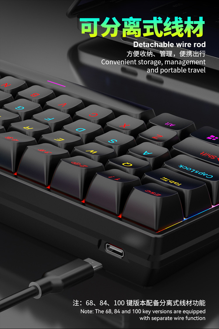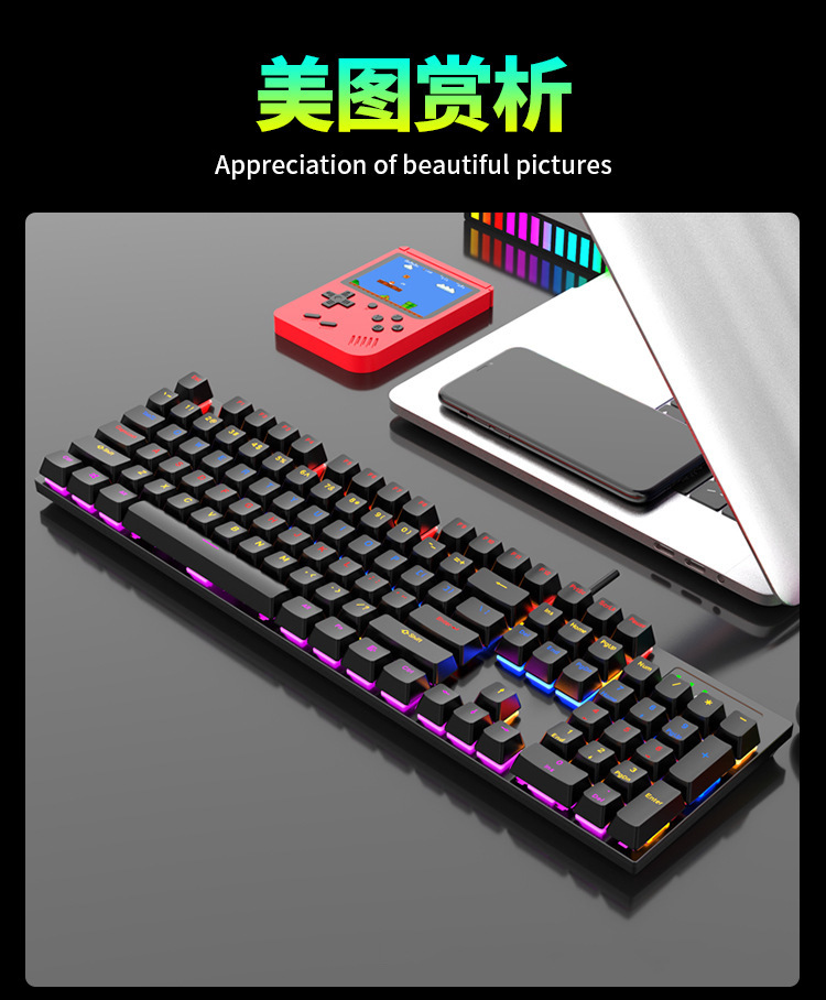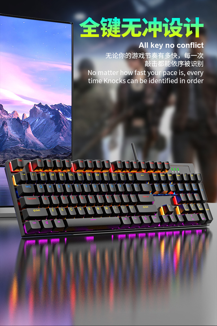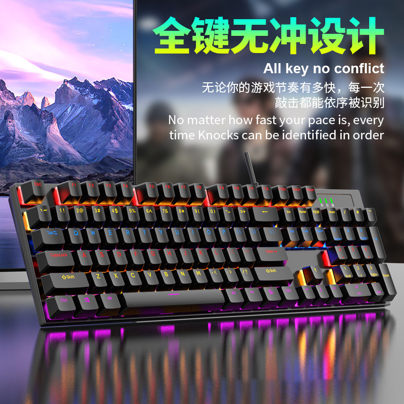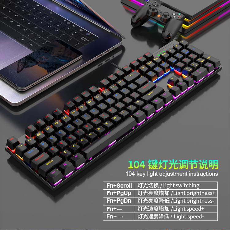 104键混光可插拔电竞游戏机械键盘批发RGB全键无冲青红轴电脑办公 投诉