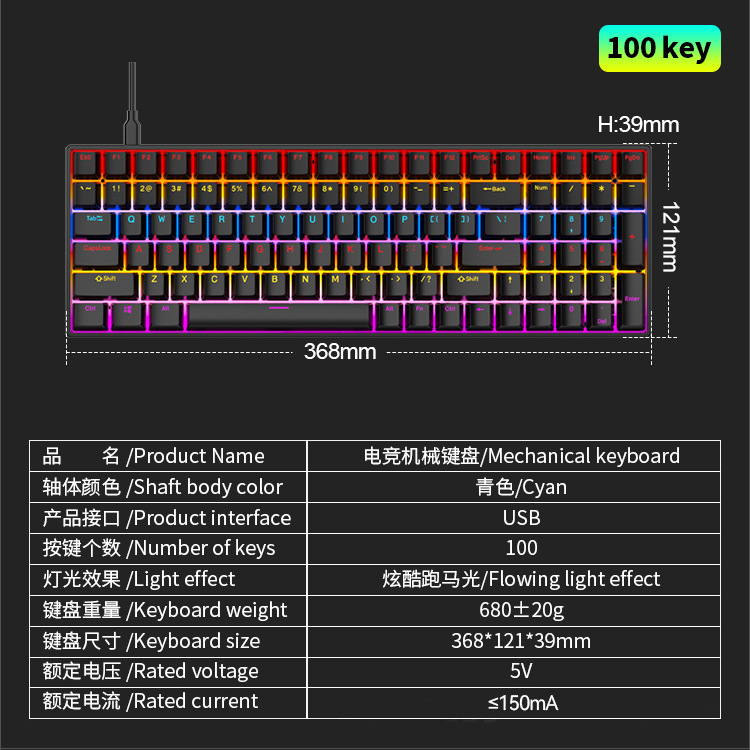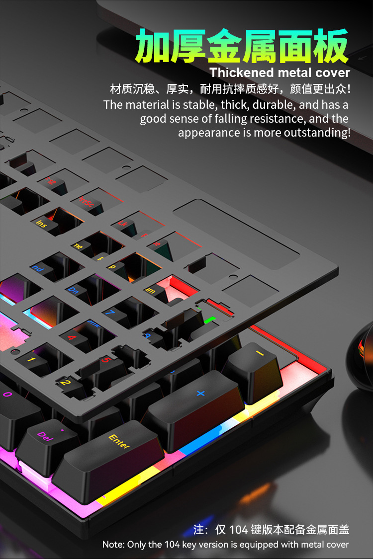 104键混光可插拔电竞游戏机械键盘批发RGB全键无冲青红轴电脑办公