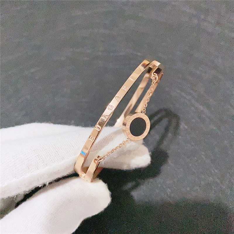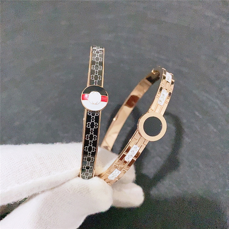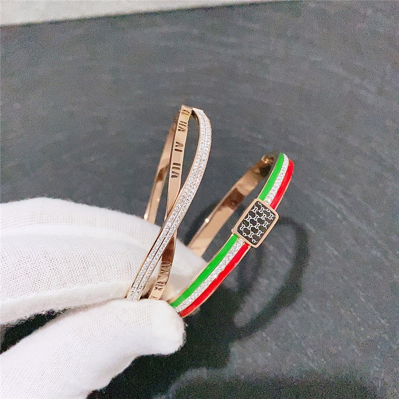 日韩新款镂空钛钢不褪色玫瑰金手镯镶钻简约开口手环钛钢饰品批发
