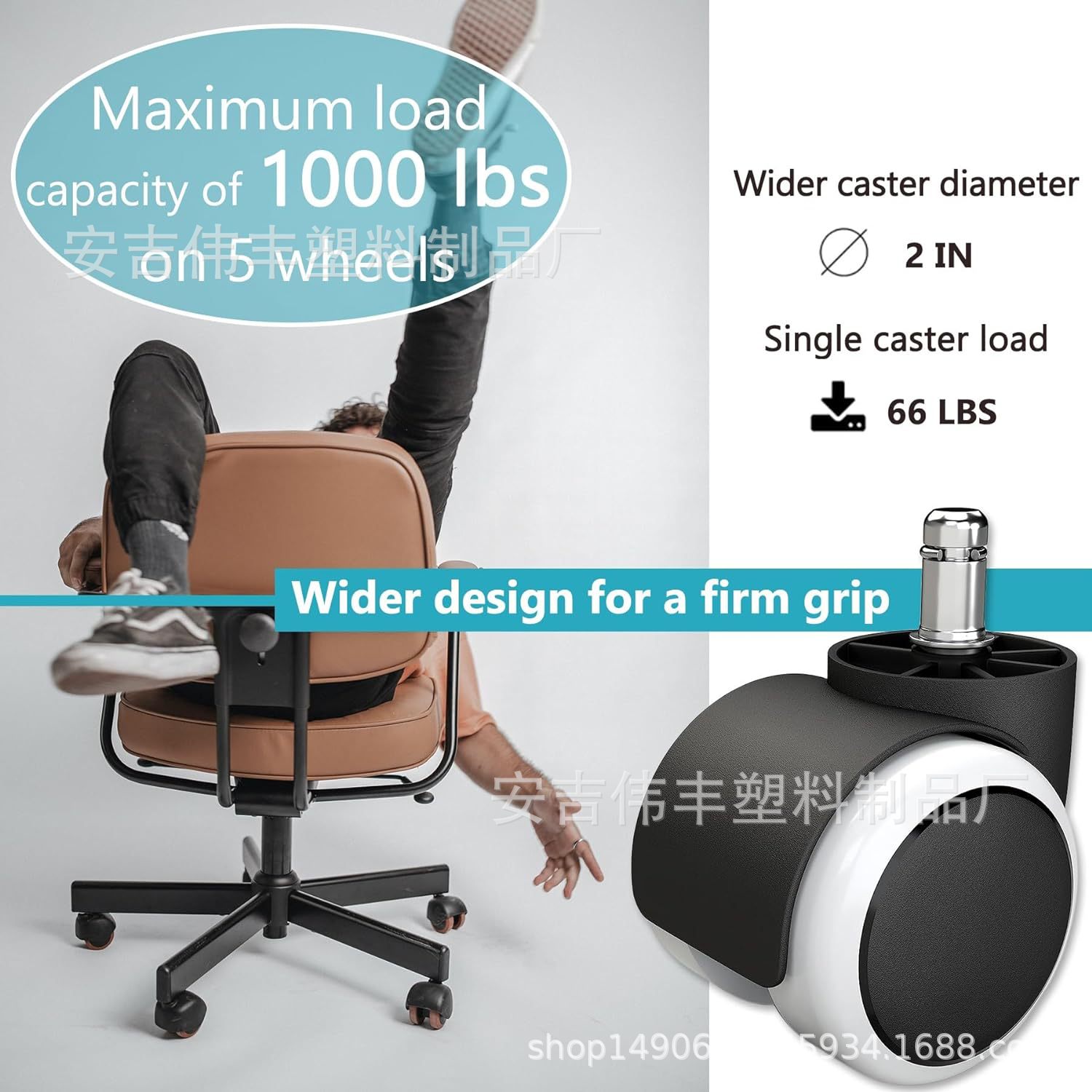 供应跨境亚马逊静音2寸PU加厚尼龙万向轮卡簧办公椅脚轮家具配件 投诉