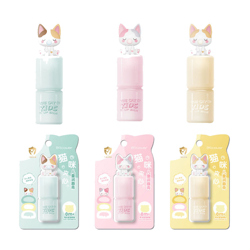Bqcover猫咪夹心儿童润唇膏男小女孩儿童唇膏补水滋润唇部精华蜜