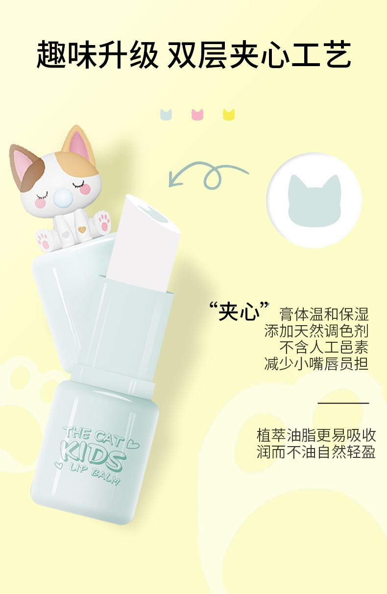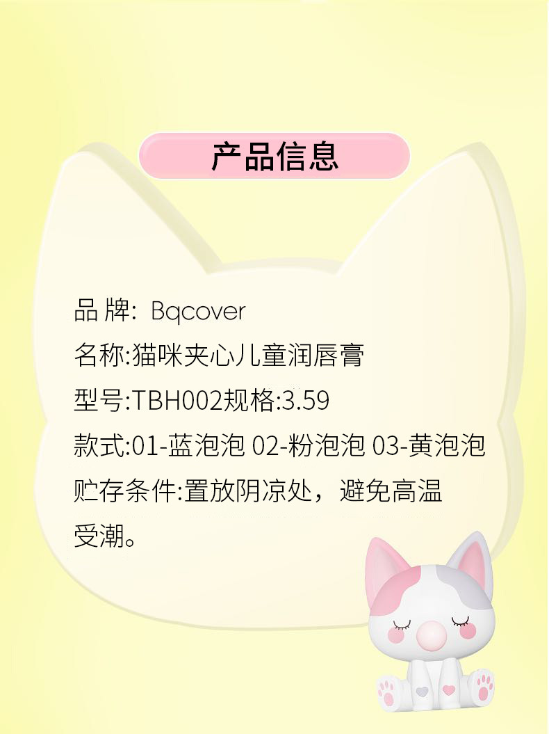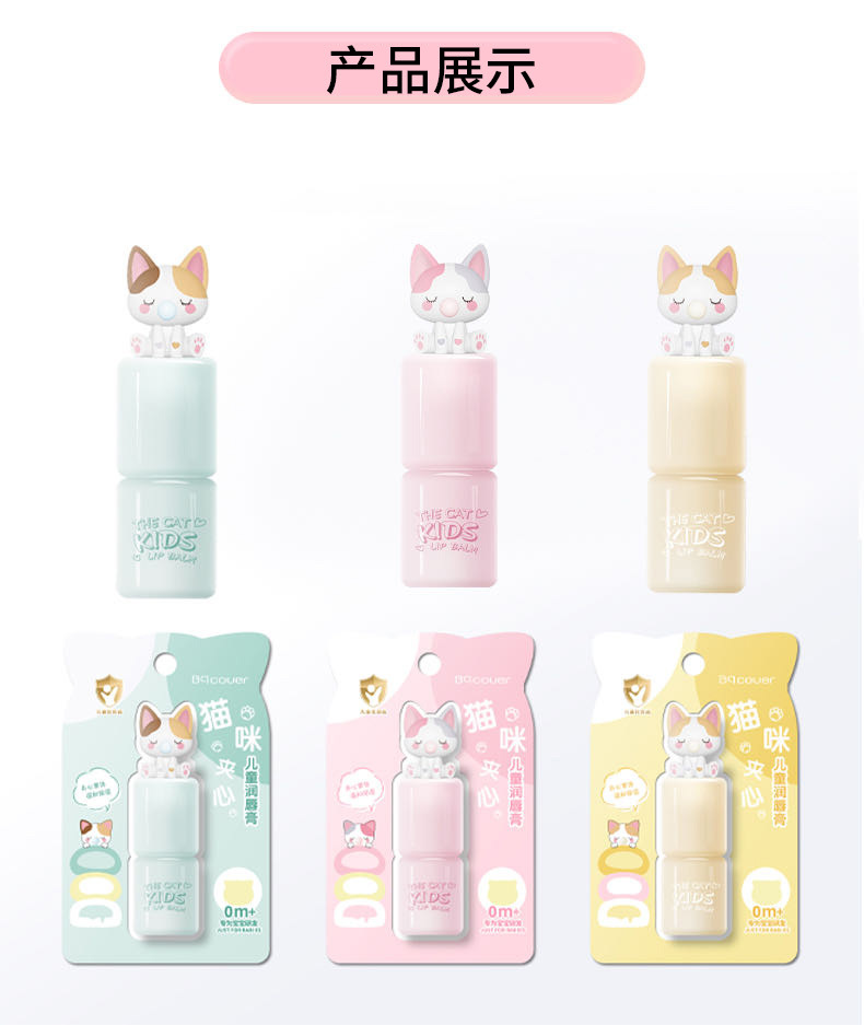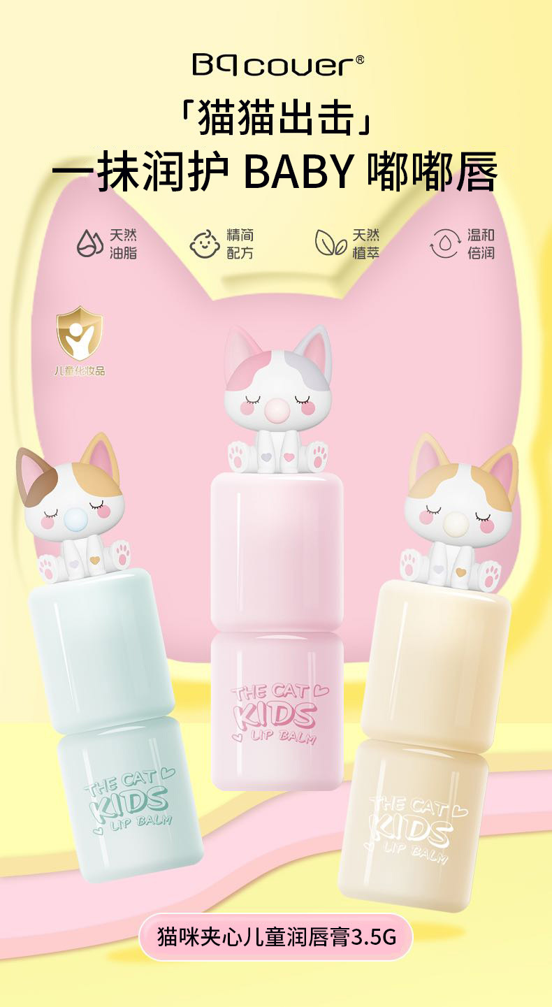 Bqcover猫咪夹心儿童润唇膏男小女孩儿童唇膏补水滋润唇部精华蜜专供出口 投诉